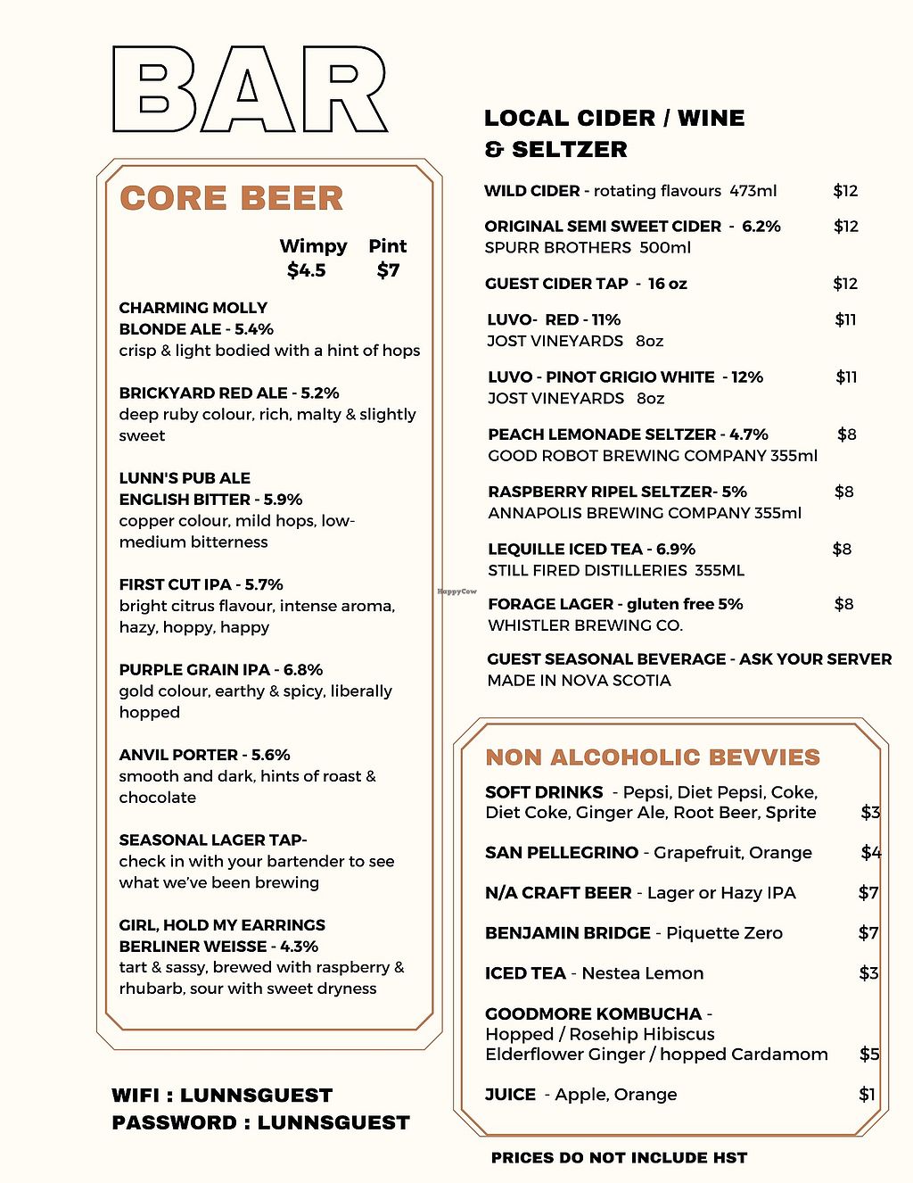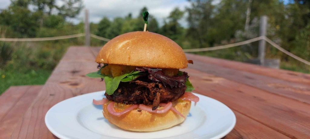 Serves meat, vegan options available. Craft beer bar serving house-brewed beer, locally made wine, cider, non-alcoholic beverages such as kombucha and iced tea, and offering some vegan food options. Vegan food choices include Impossible burgers, Beyond Meat chicken tenders, black-bean tostadas, flatbread, poutine, Portobello burgers, onion rings, poke bowls, and nachos. Open Wed-Thu 4:00pm-9:00pm, Fri-Sat 12:00pm-9:00pm, Sun 12:00pm-5:00pm. Closed Mon. Kitchen opens at 4pm Wed-Fri.