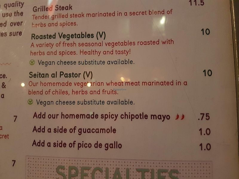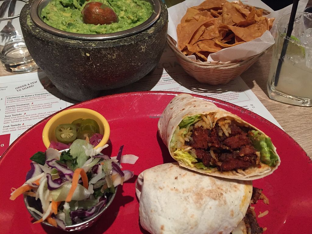 When we first arrived all seemed good , nice vegan options on menu . However when it arrived , a few mouthfuls in for my unfortunate friend it became clear she’d been served chicken. The waitress didn’t seem overly bothered when we told her , just replaced the dish and gave my friend a comp drink. My dinner which was hopefully vegan was a tasteless combo of mainly rice , negligible veg wrapped in a tortilla . Don’t eat here if you are vegan / have tastebuds ..