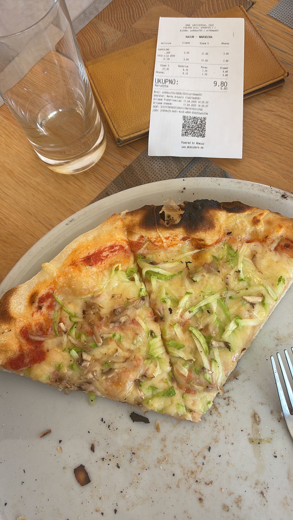 Amazing vegan pizza with vegan cheese, zucchini and mushrooms