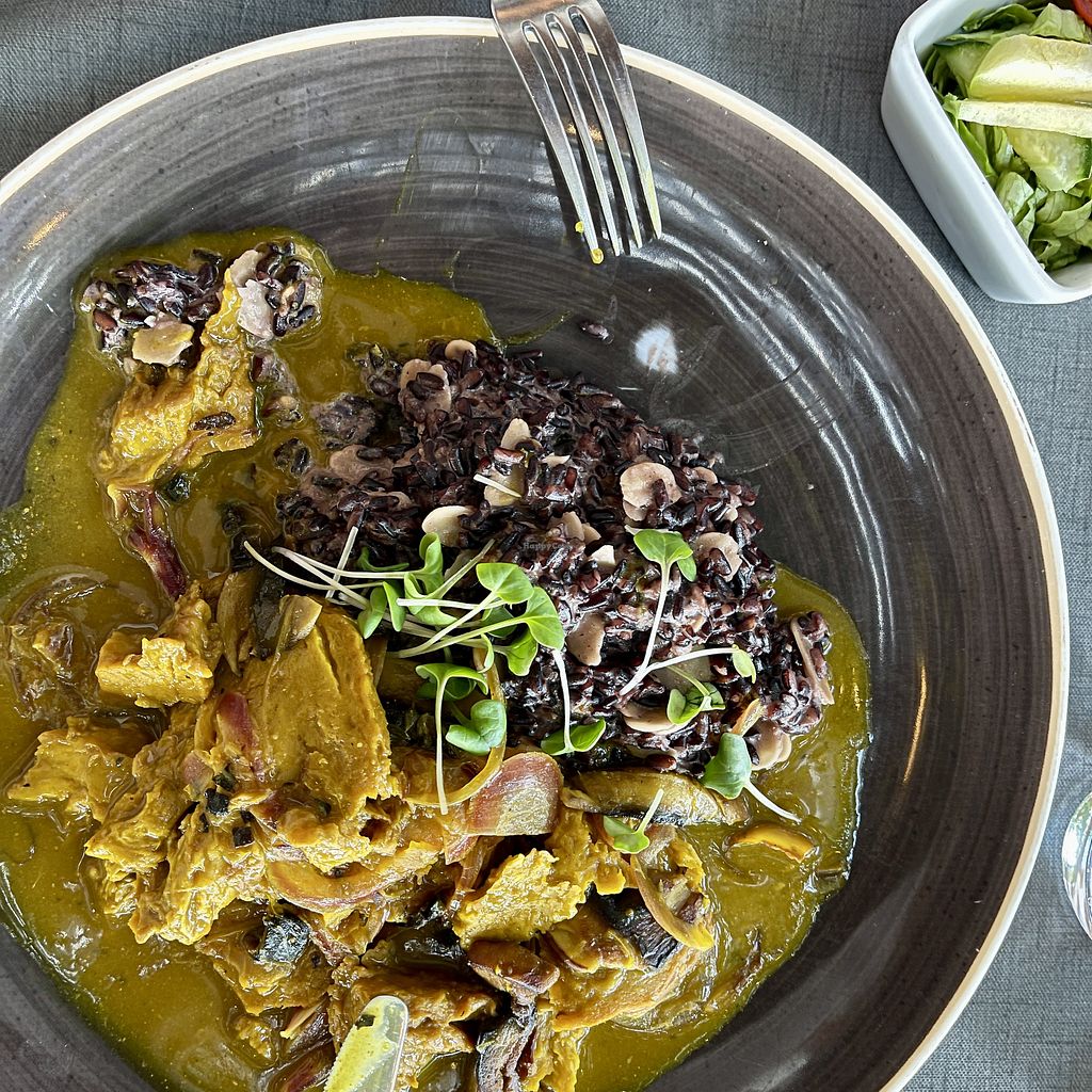 They have an amazing vegetarian/vegan selection of food, I had the chef special of miso marinated seitan with mushrooms and black rice - literally so good! The staff are super friendly too and made me feel so welcome. If you’re vegetarian I highly recommend the fruit crumble- to die for, amazing!