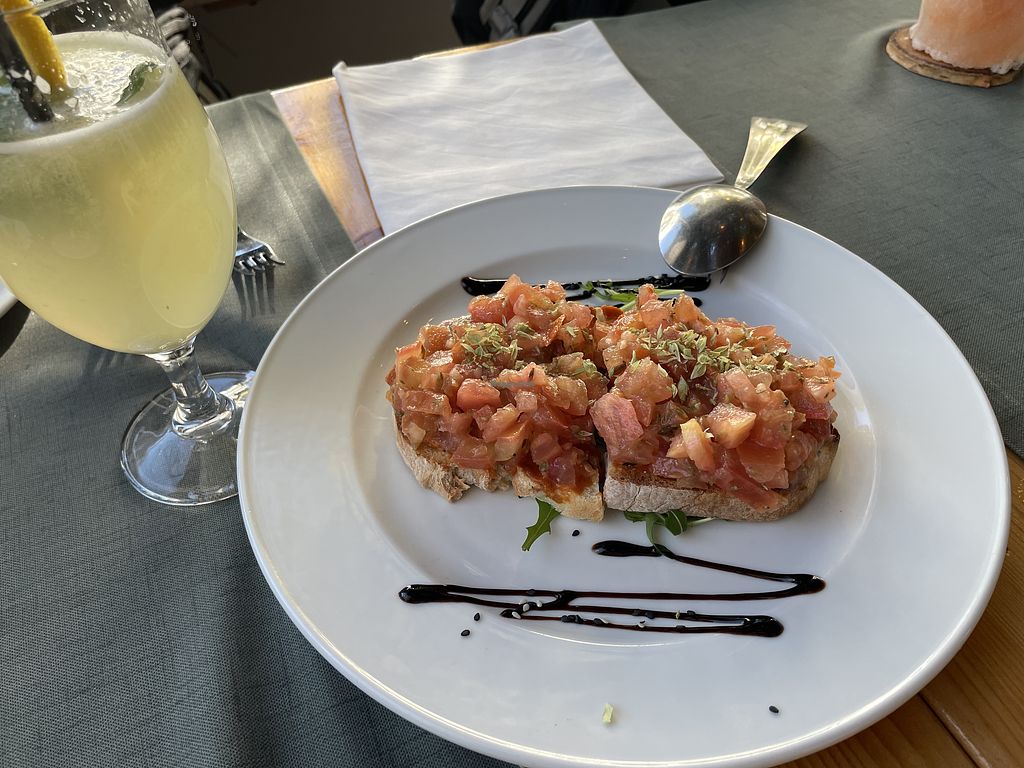 Wir saßen draußen und hatten schönen Ausblick die Straße herunter. Das Restaurant war sehr gemütlich und durch die freundlichen Mitarbeiter haben wir uns noch wohler gefühlt. Die vegane Option hat sehr gut geschmeckt!