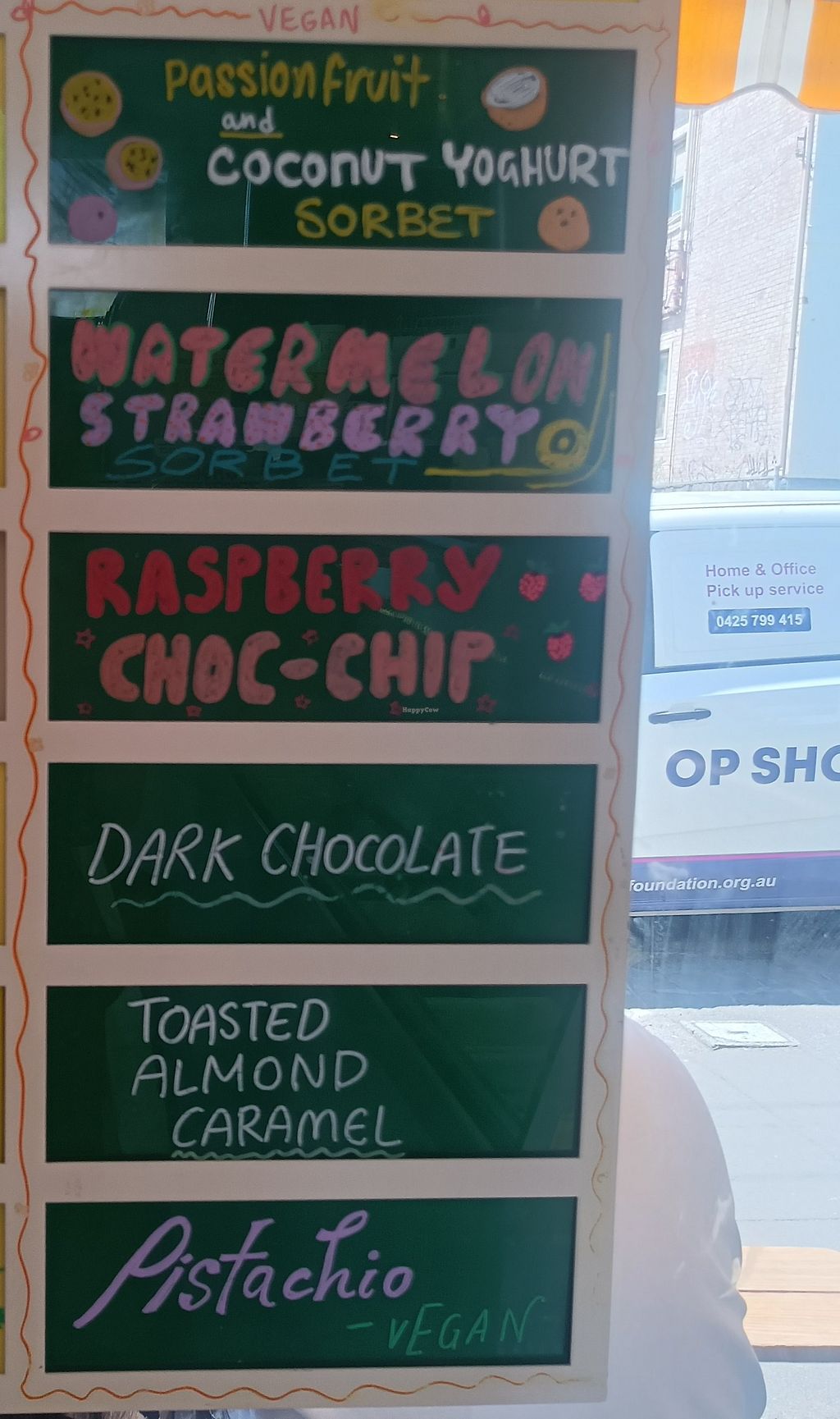 Clear vegan menu section - I tried the toasted almond and a pistachio scoop. Unfortunately they were surprisingly quite... bland. Scoops were very generous.