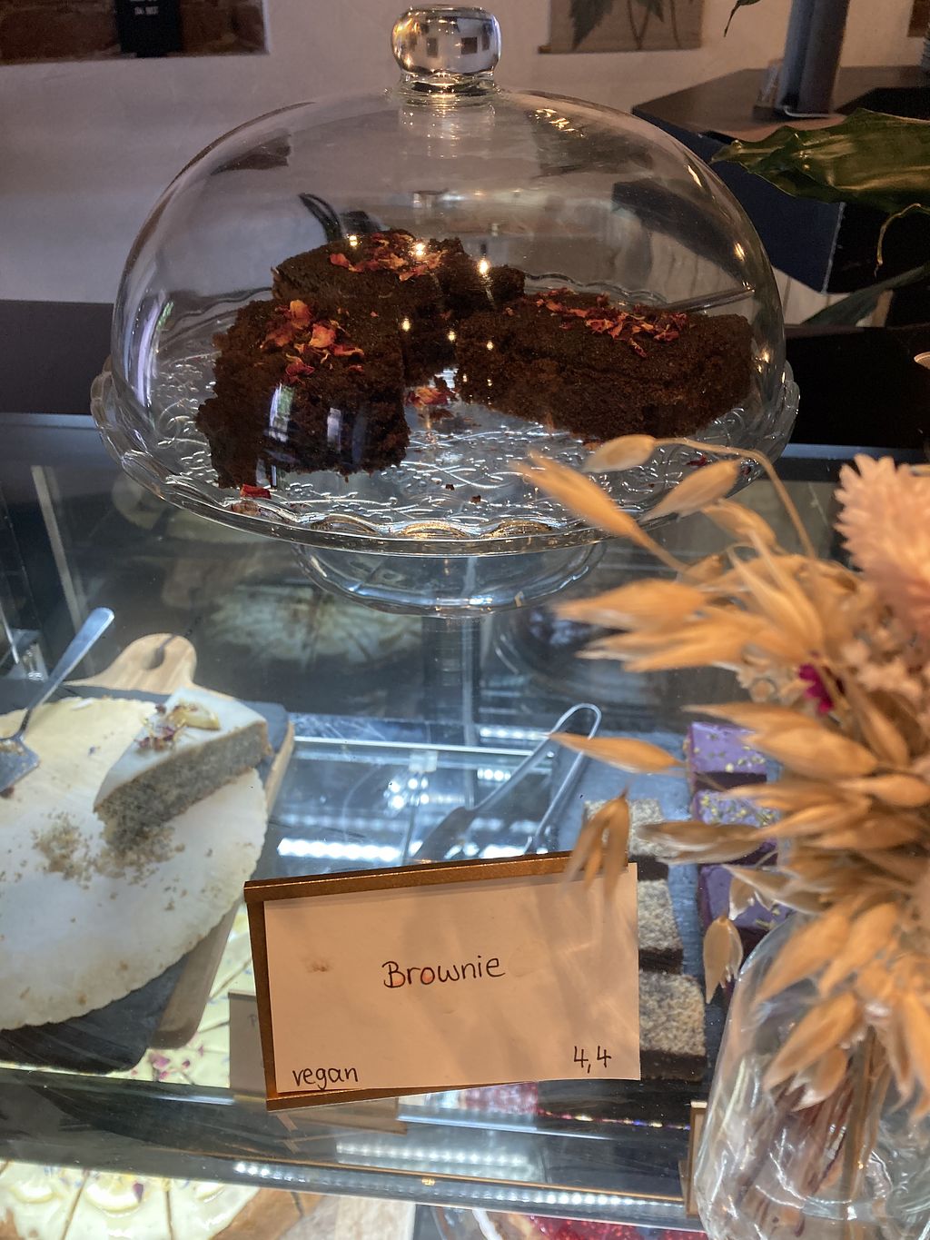 Good choice of veg and vegan food. Salats, sandwiches, soup and curry. Also wonderful vegan cakes and desserts. Friendly staff
