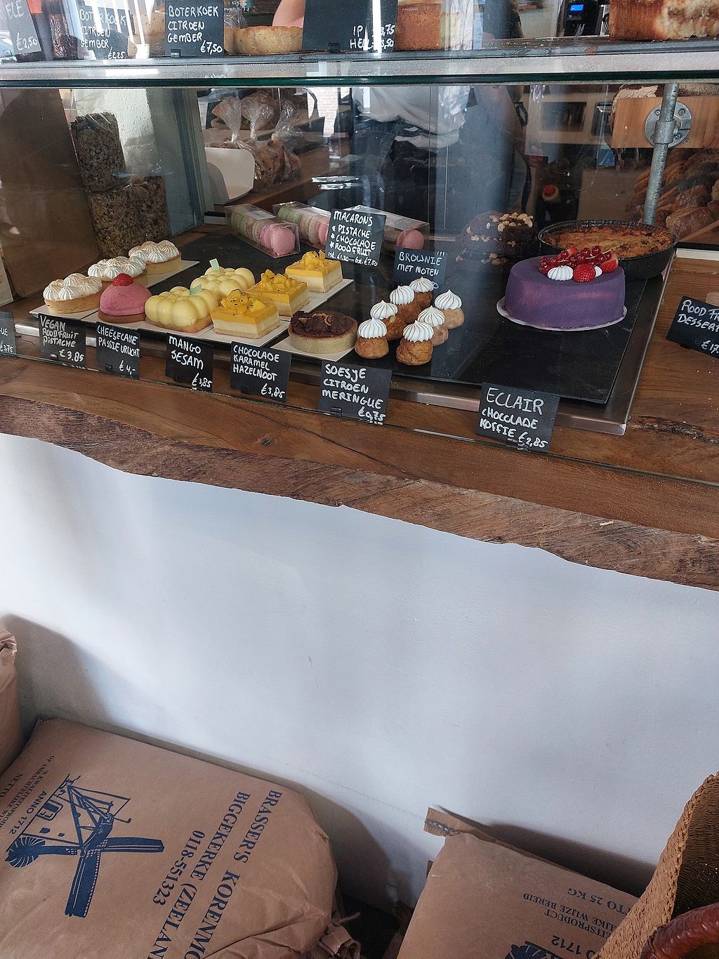 Ze hebben heel lekker versgebakken brood. Ook de boterkoek smaakte heerlijk, ook al is die natuurlijk niet vegan, maar de brownie met passievrucht is dat wel en die zag er ook lekker uit.