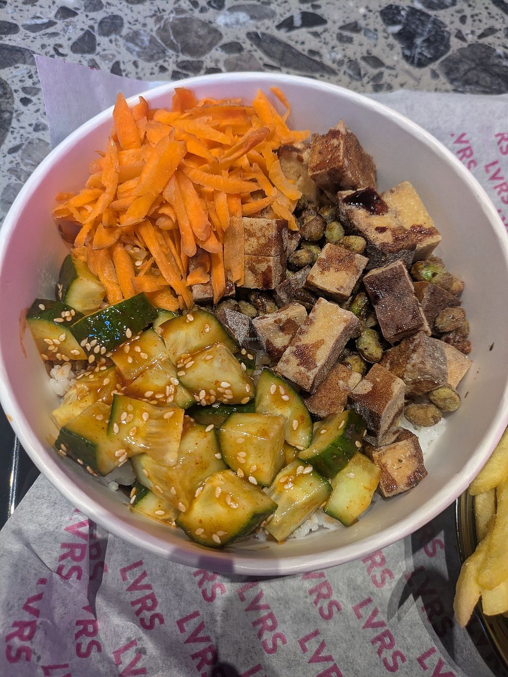 Serves meat, vegan options available. Burger-Restaurantit veganen Optionen, Veganer Burger