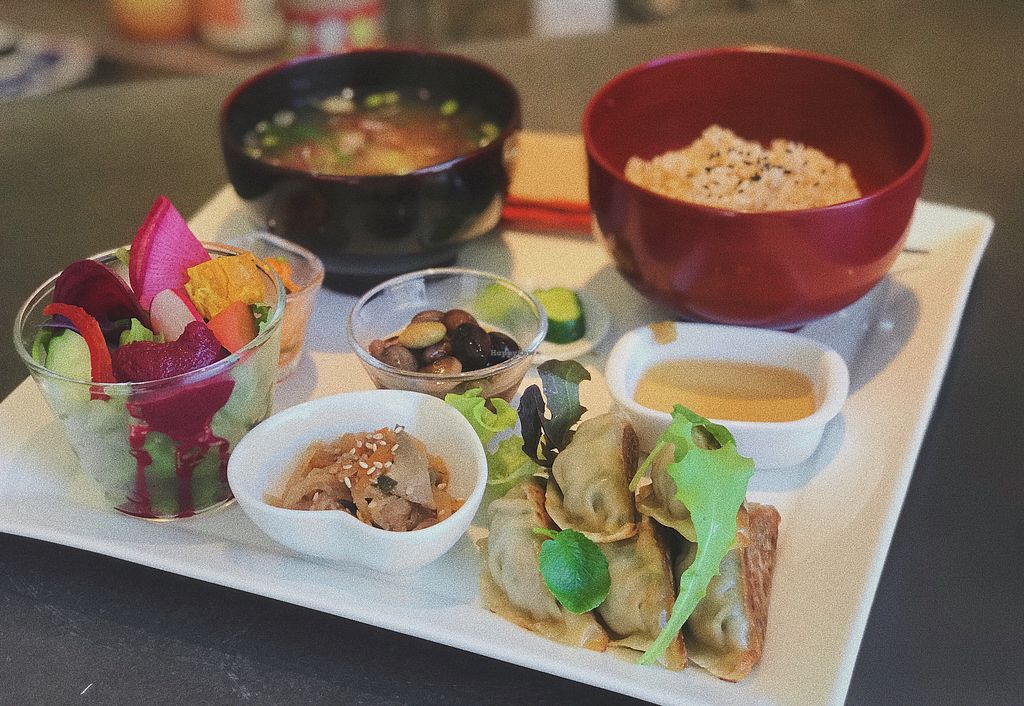 We walked in for a late lunch and had a fantastic meal here. I had the gyozas (which came with a bunch of little side dishes, rice and miso soup) and my husband had a lentil pasta. Both meals were deliciously fresh and tasty. Would recommend anyone in the area seek this place out to stop for a meal.