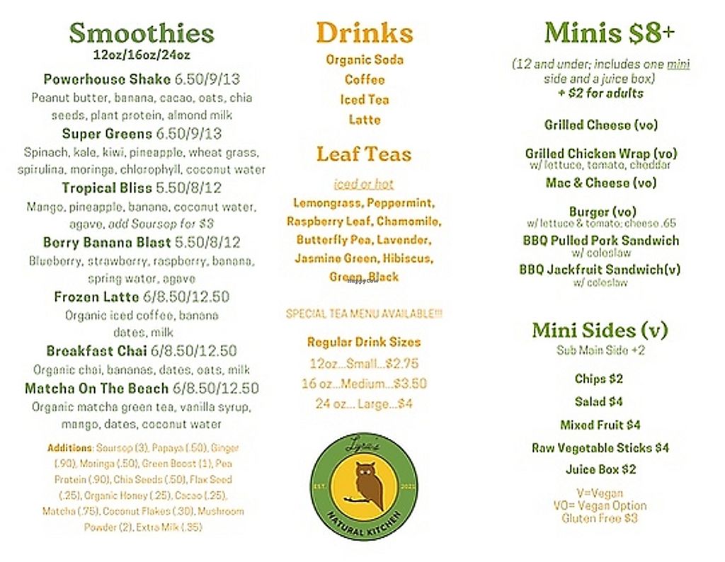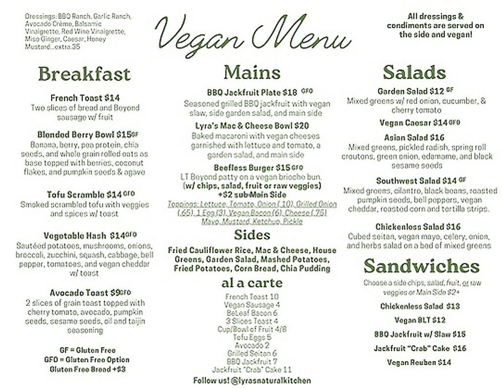 Vegan menu