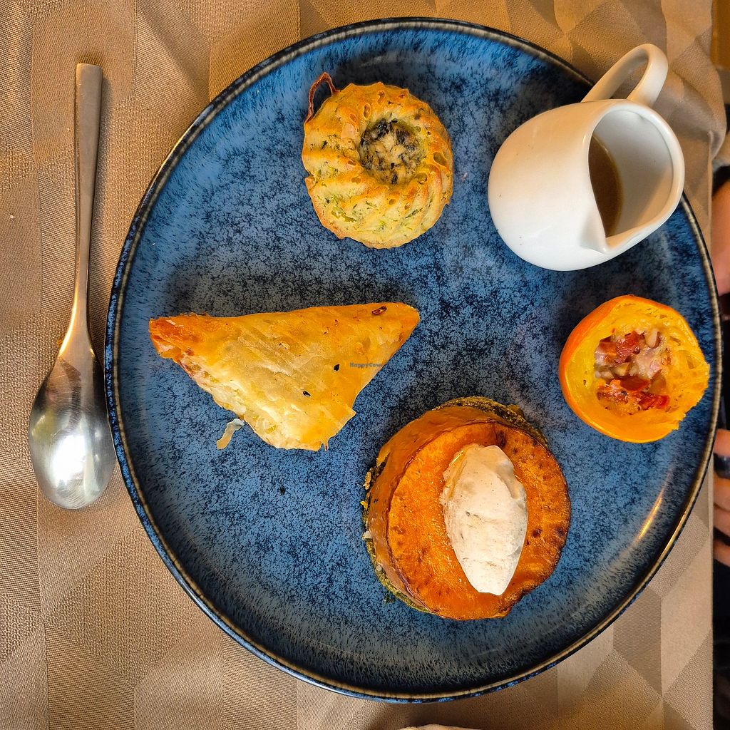 tomate confite, flan crémeux, polenta tomate olive, samoussa à la grec…