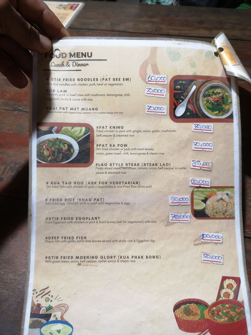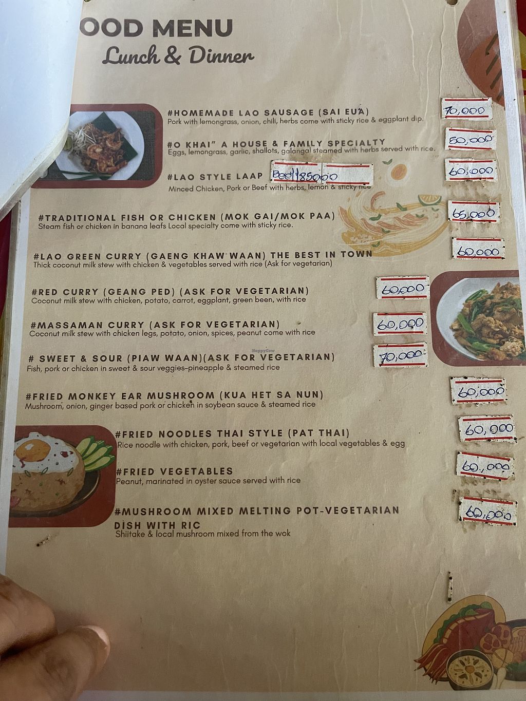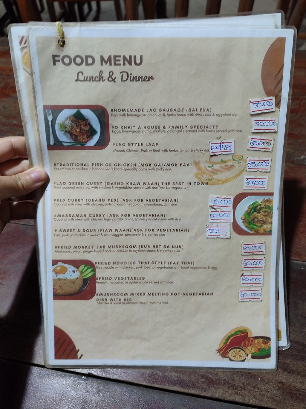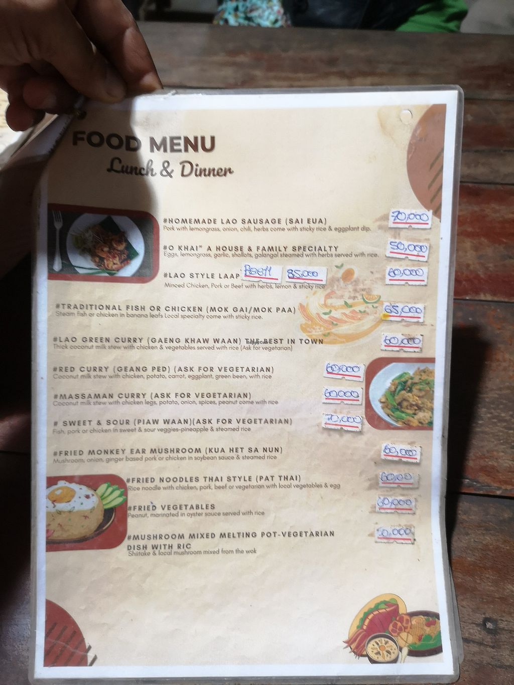 Wir waren ganze 4 Mal dort und wurden nie enttäuscht. Das Essen ist super lecker, würzig und frisch zubereitet. Da Mama Alex selbst vegan ist, kann die Familie fast alle Gerichte in veganer Option zubereiten. Es gibt von laotischer bis westlicher Küche in angemessenen Preisen. Ebenfalls auch alle Shakes/Kaffee mit Soya- oder Kokosnussmilch möglich.