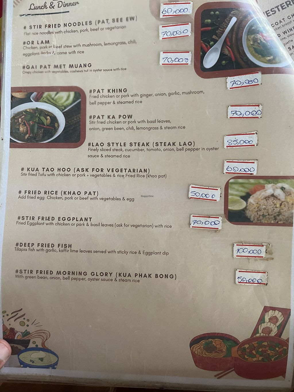 Ma Ma Alex understands what veganism is and offers to replace meat with tofu, and always reassures me that there’s no egg and no fish sauce in the dish. Everything is freshly made, gigantic portions, and ridiculously delicious. I came here daily for breakfast and dinner because of all the vegan options, particularly the Lao dishes that are truly amazing. Lots of comfortable seating available and Ma Ma Alex is super sharp (she remembers everything in detail!). My only regret is not being able to taste her pumpkin soup with coconut cream that others have raved about (seems it’s not always available).