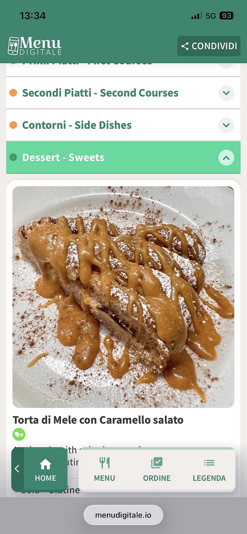 I had the linguine all’amatriciana which was a beautiful tomato sauce with smoked tofu. It was absolutely delicious. For dessert I ordered the apple cake with salted caramel sauce. In the photo of this dish it showed a beautiful caramel sauce covering the cake. However when it came the sauce had been replaced with a thick paste. It tasted nice and the cake was very soft but I was disappointed not to have the sauce I was expecting. This is why I gave 4 stars instead of 5 stars. The ambiance is nice and I would definitely go back.