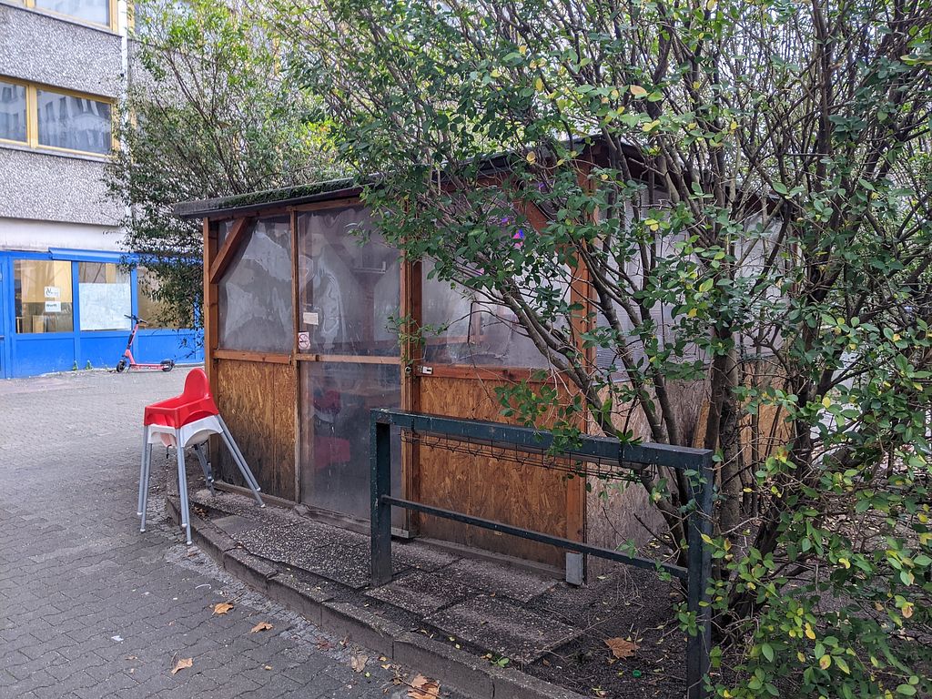 The place is quite hidden. They also have tables outdoors. The food is excellent and very cheap.
