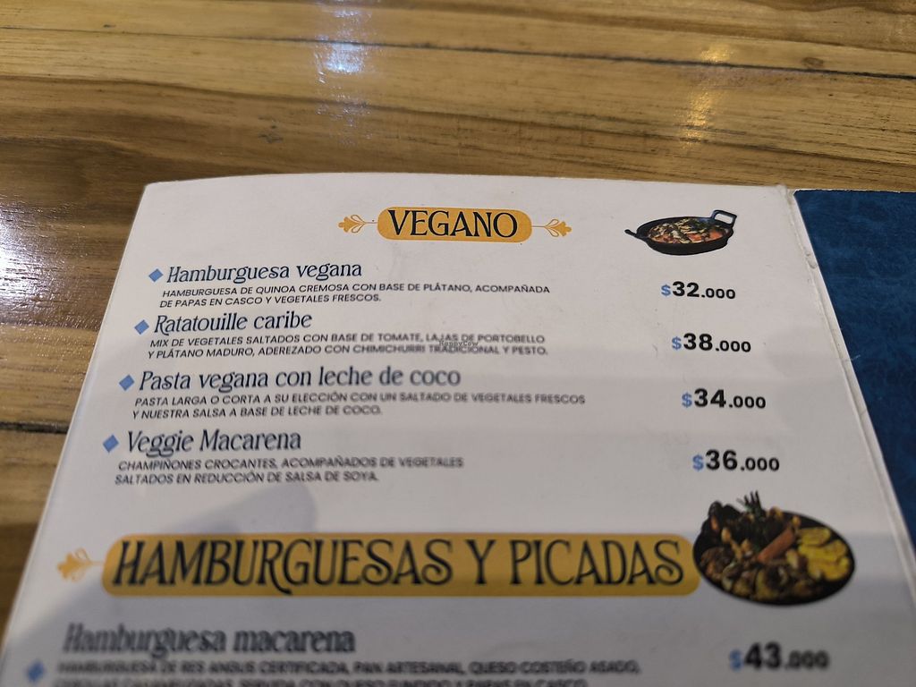 There was a section for vegan options in the menu which was nice, I got the vegan burger made with Columbian ingredients, it was really tasty!
