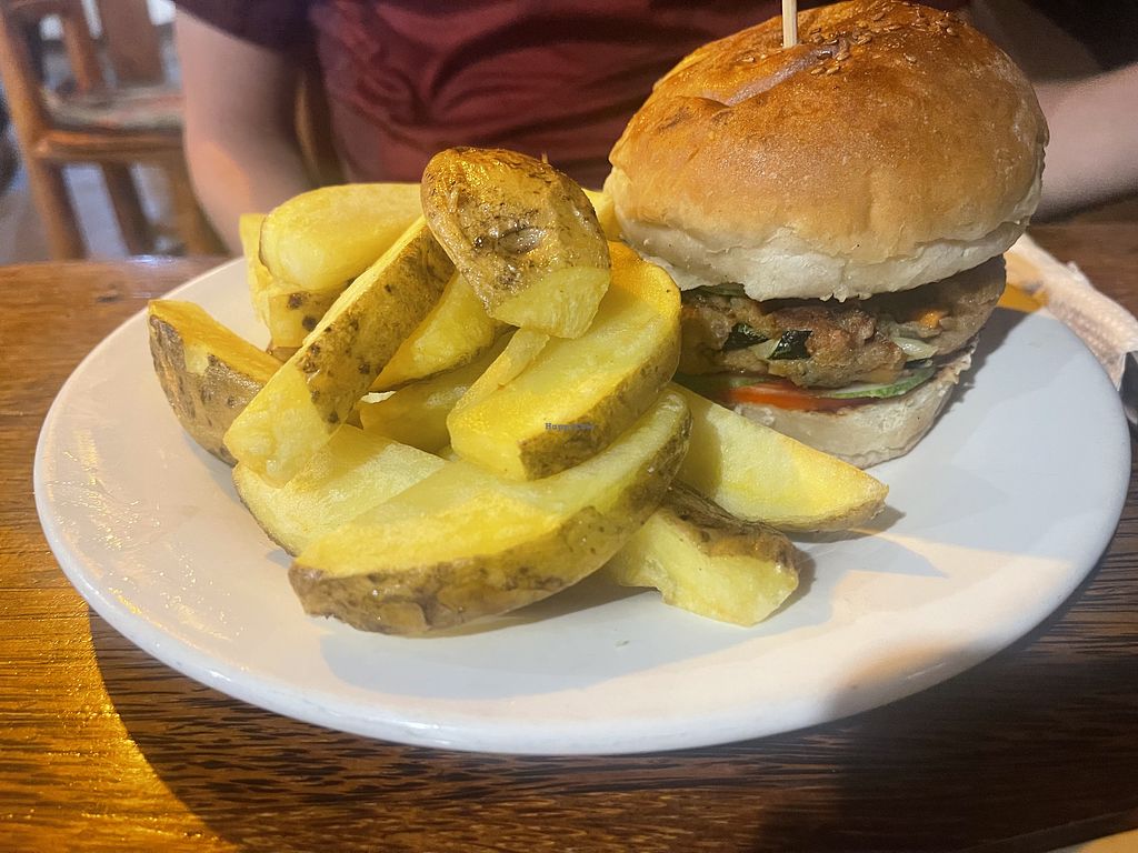 Serves meat, vegan options available. Local food place with a sandy floor and chilled vibe. Vegan and/or items that can be made vegan include veggie Indian wrap, veggie curry, falafel wrap, smoothies and juices. Open Mon-Sat 11:00am-10:30pm, Sun 7:00am-10:30pm.