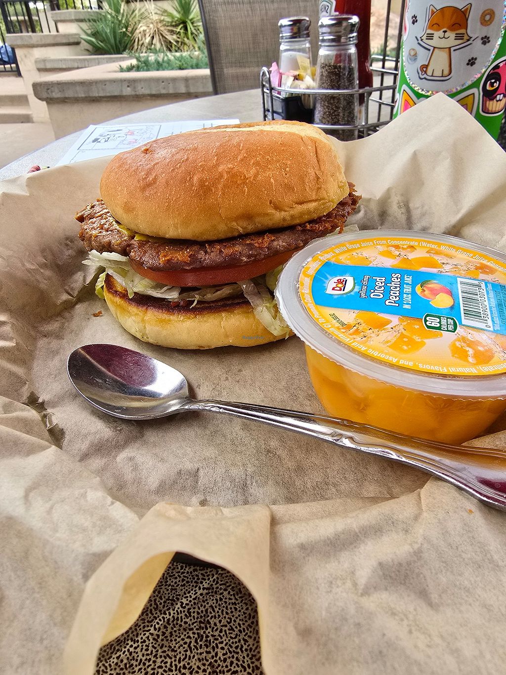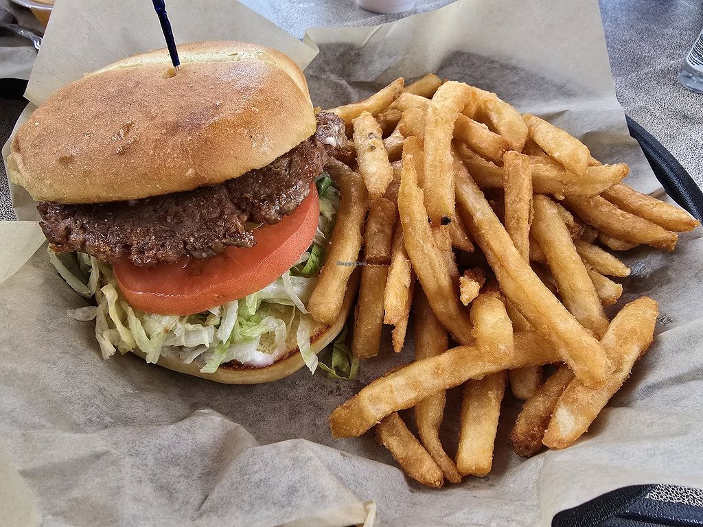 The burger was enormous, the fries were enormous, service was great. I had the standard burger, sub a vegan patty and vegan mayo with lettuce, tomato, onion, pickle.