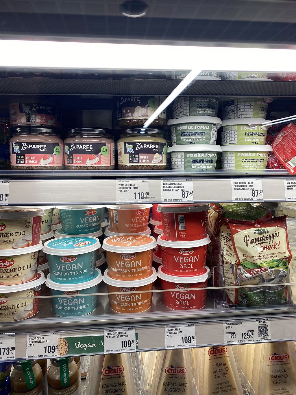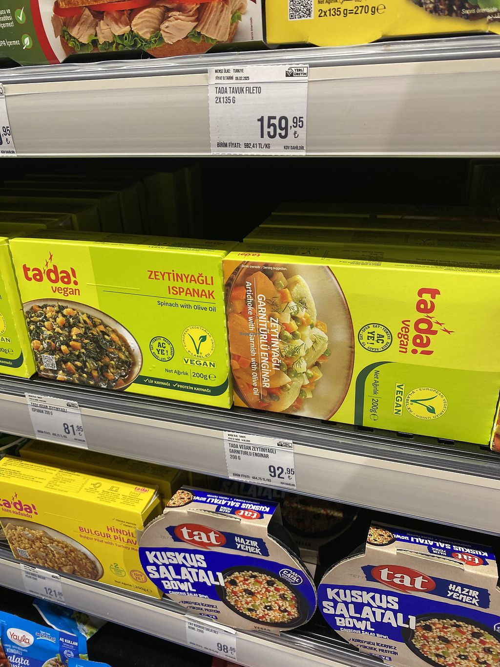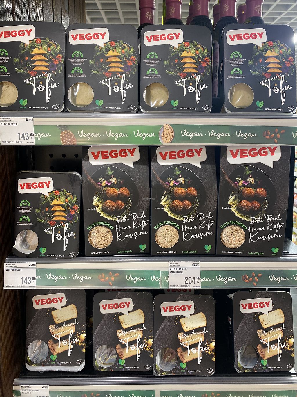 Freezer has vegan burgers etc next to the frozen vegetables.