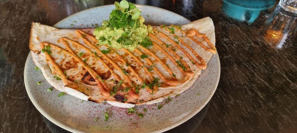 Atmospheric decor with lots of attention to detail. Vegetarian restaurant with lots of vegan and gluten-free options. We had fritters, kimchi toasties and nasi goreng (vegan uses with tofu instead of egg). Sides were sweet potato chips and potato chips. The whole place was a great experience. I’d have have liked leaf tea instead of a teabag but that’s the only fault.