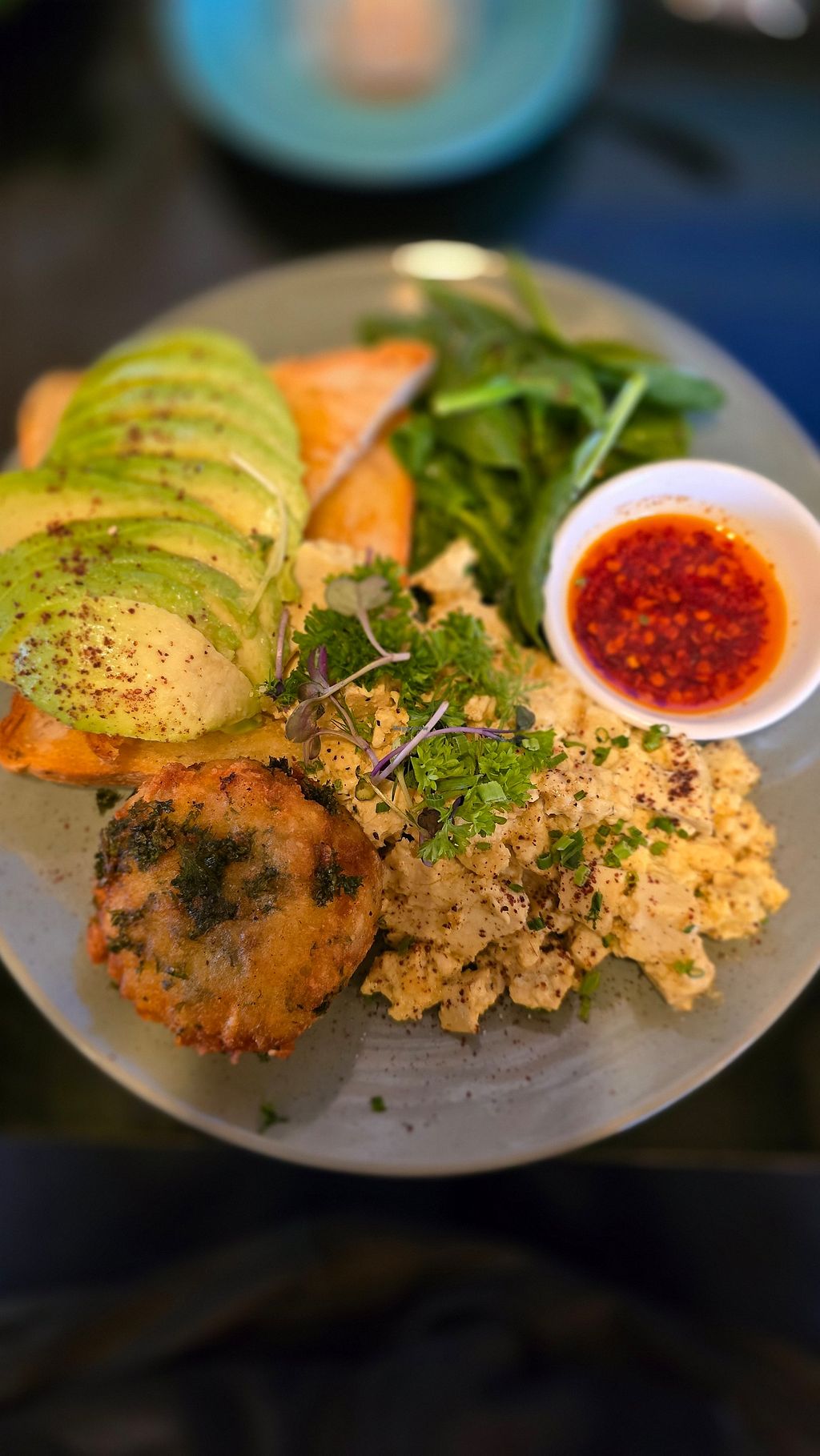 Read moreI ordered the ‘scrambled tofu’, which stunk of egg - as though the chef hadn’t bothered to clean the grill between meals, despite specifying ‘vegan’ when ordering - despite being hungry and my last proper meal before a week of camping I didn’t eat it all, the thin row of greasy mushroom-and-tofu plonked over fried blocks of polenta tasted like nothing but too much salt and recycled egg.