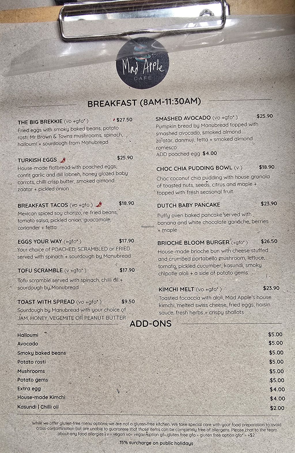 Read moreI’m so sorry to read about your recent experience at Mad Apple. Our chefs take pride in the food we produce and it is disappointing to receive such a review. It is surprising to get a bad coffee review too, can I ask you what you coffee you had? I can guarantee there is no cross contamination in our kitchen as we respect people’s dietary choices or requirements. They use clean pans for scrambles.