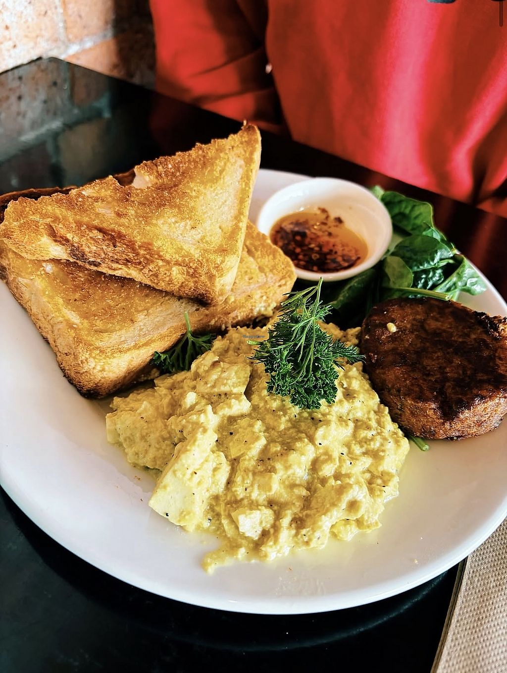 Tofu scramble was delicious. So good. Great coffee too.