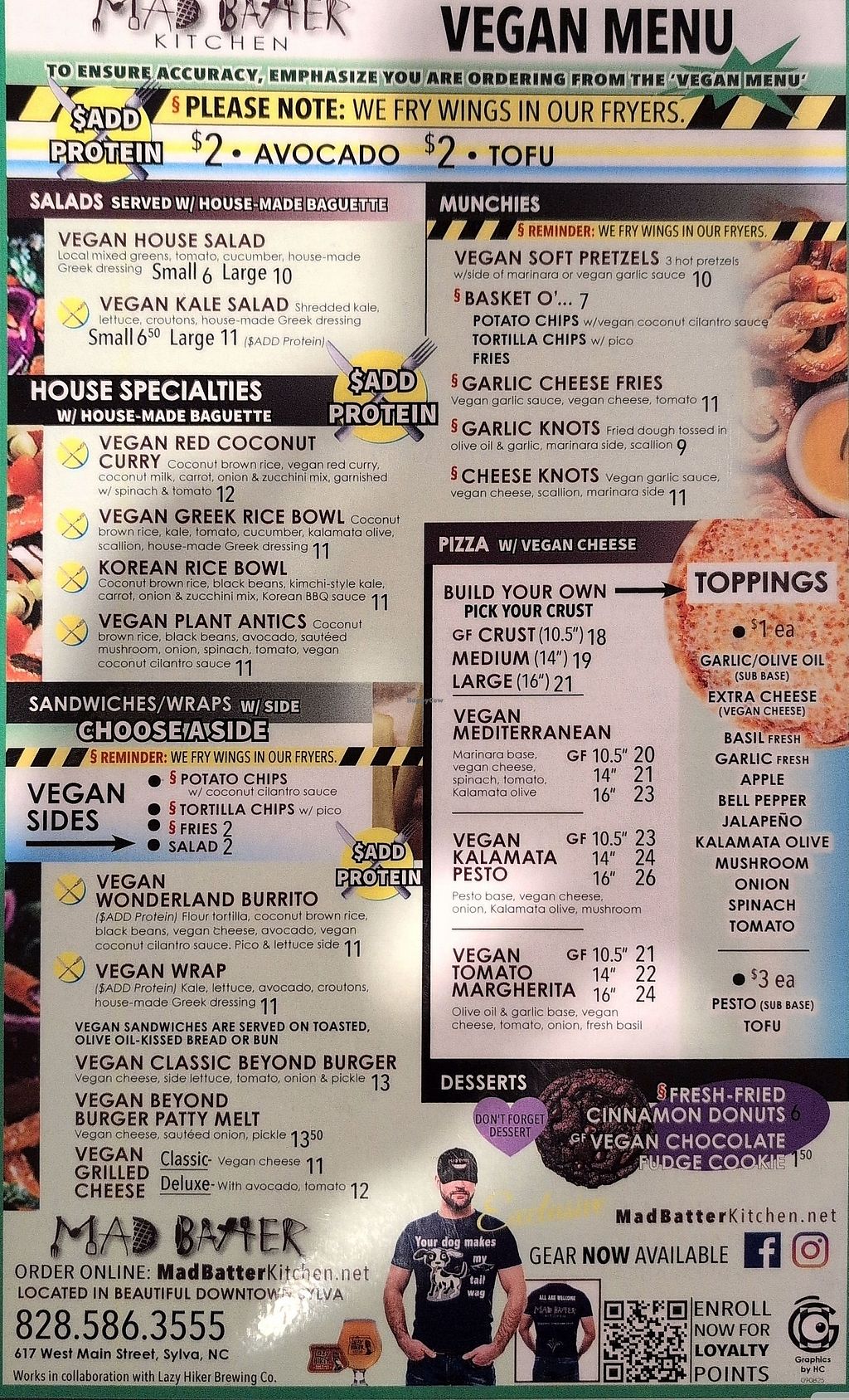 What was called "Mad Batter" before is now "The Lazy Hiker." This is a sweet little brewery with an air-conditioned indoor space and nice patio outside. I've had their vegan pizza so many times and love it! The crust is good and the cheese is perfect. I like to get pineapple and mushrooms as toppings.
