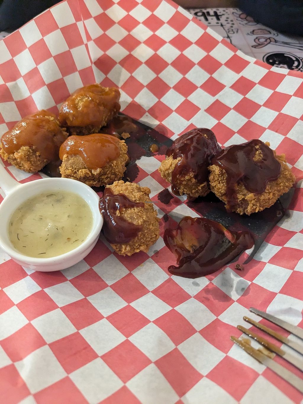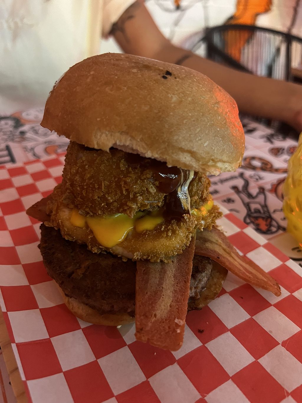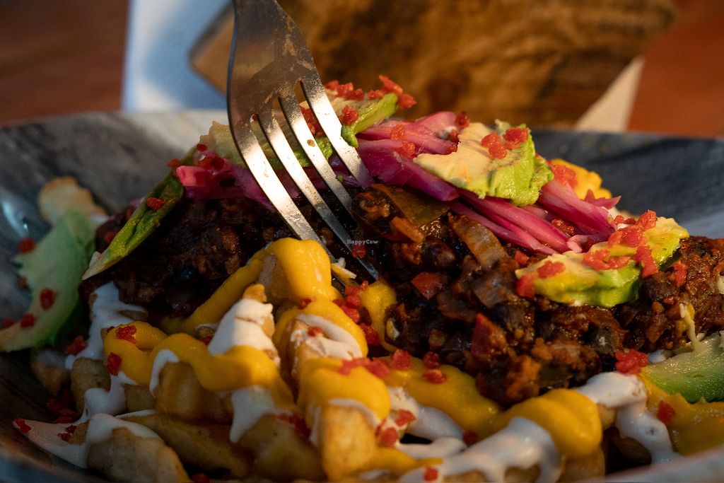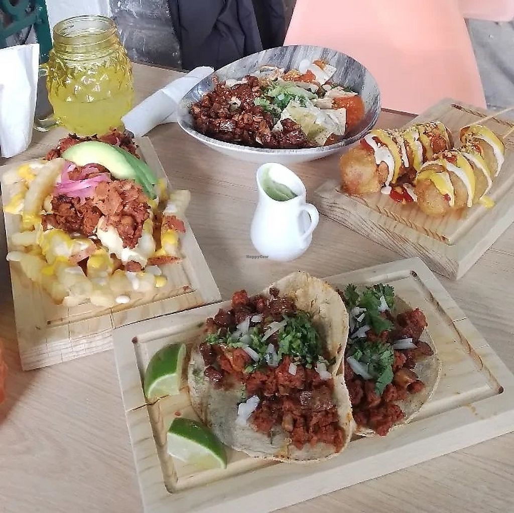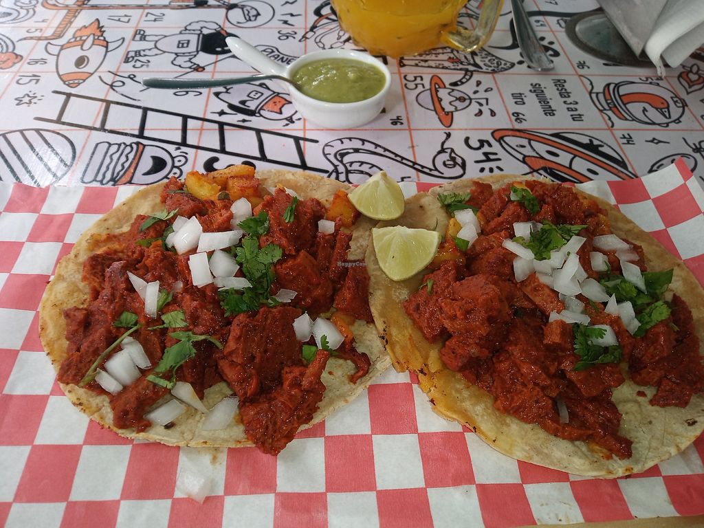 A plant-based restaurant with unique plant-based eggs. Specialised in burgers, burritos, and Mexican food. Choices may include hamburhuesas, tacos, burritos, banderillas, boneless, chilaquiles, enchiladas, and the original plant-based “huevo." Reported closed November 2024.