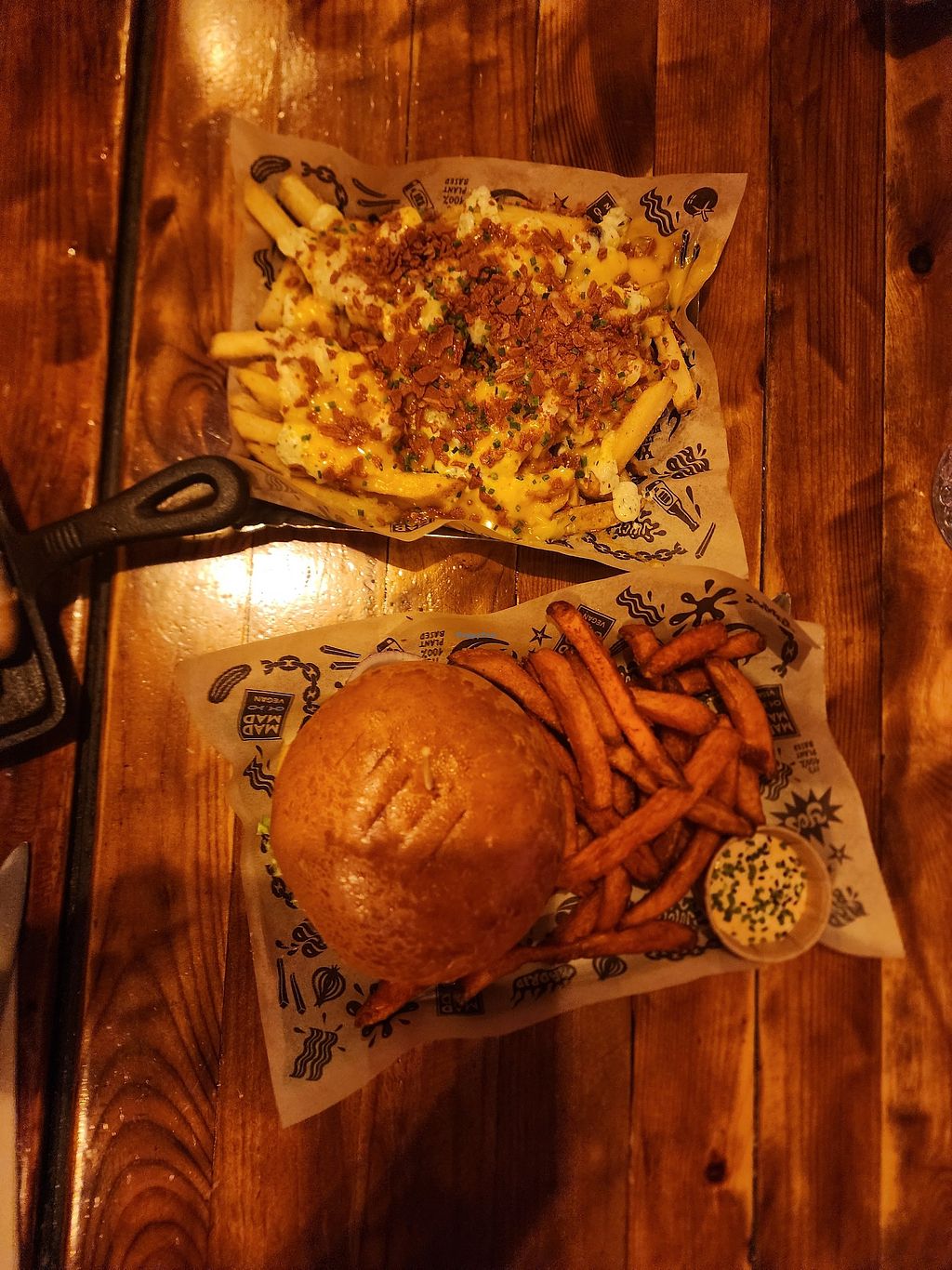 Hamburguesas súper ricas y originales, fuera de la típica hamburguesa de ketchup y pepinillos, y la ración de patatas que las acompañan para nada escasa. Pedimos también una ración de Nachos e igualmente buena cantidad y la carne vegetal que llevaban muy sabrosos. Además acertamos al pedir de las cervezas artesanales.