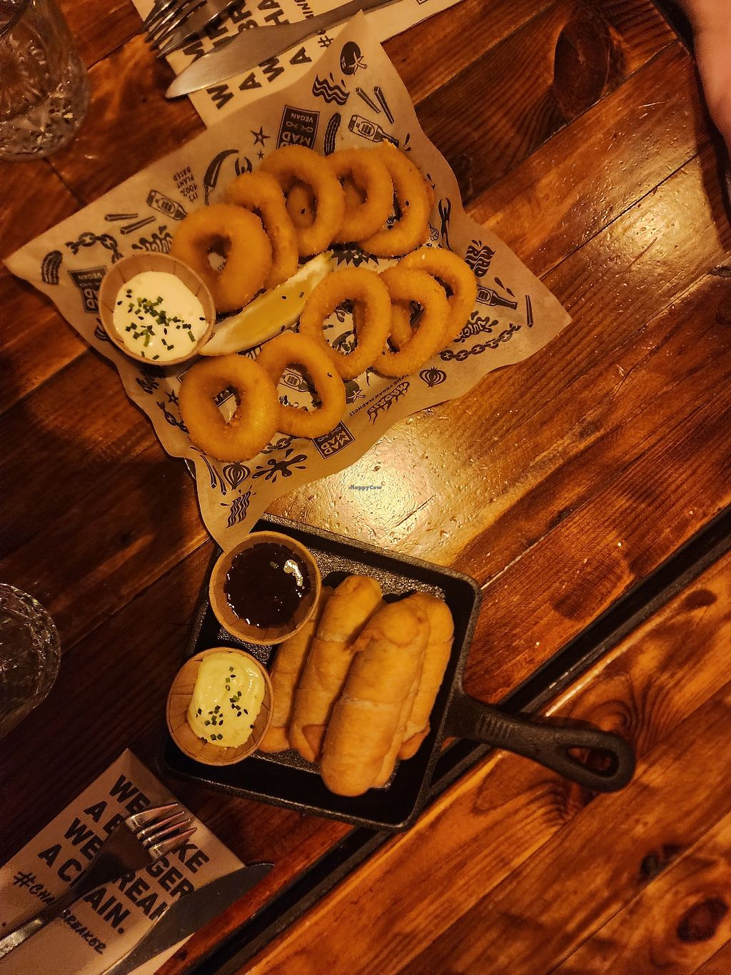 Best ever vegan calamari and buffalo wings. Freshly made and absolutely delicious. Great craft beer too.