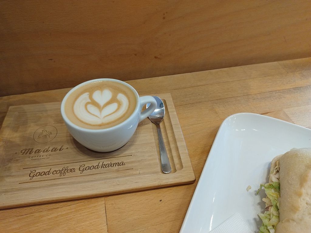 Read moreIt seems the Madal Cafe is vegetarian with vegan options, with various sandwiches and cakes. We had three-cheese croissants (definitely real cheese), which were nice. Nothing special but fresh. The cakes are all vegan.