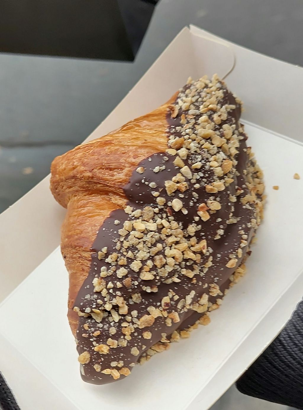 Veganer Schokocroissant mit Krokant und Schokocremefüllung