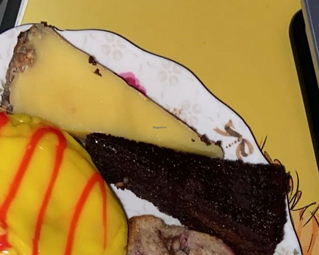 Ihre Schokobrownie-Nusstorte ist so saftig und lecker, ab und zu gabs auch eine Art Zitronentart? Die war aber gekühlt und nicht in der Theke ausgestellt. Auch lecker