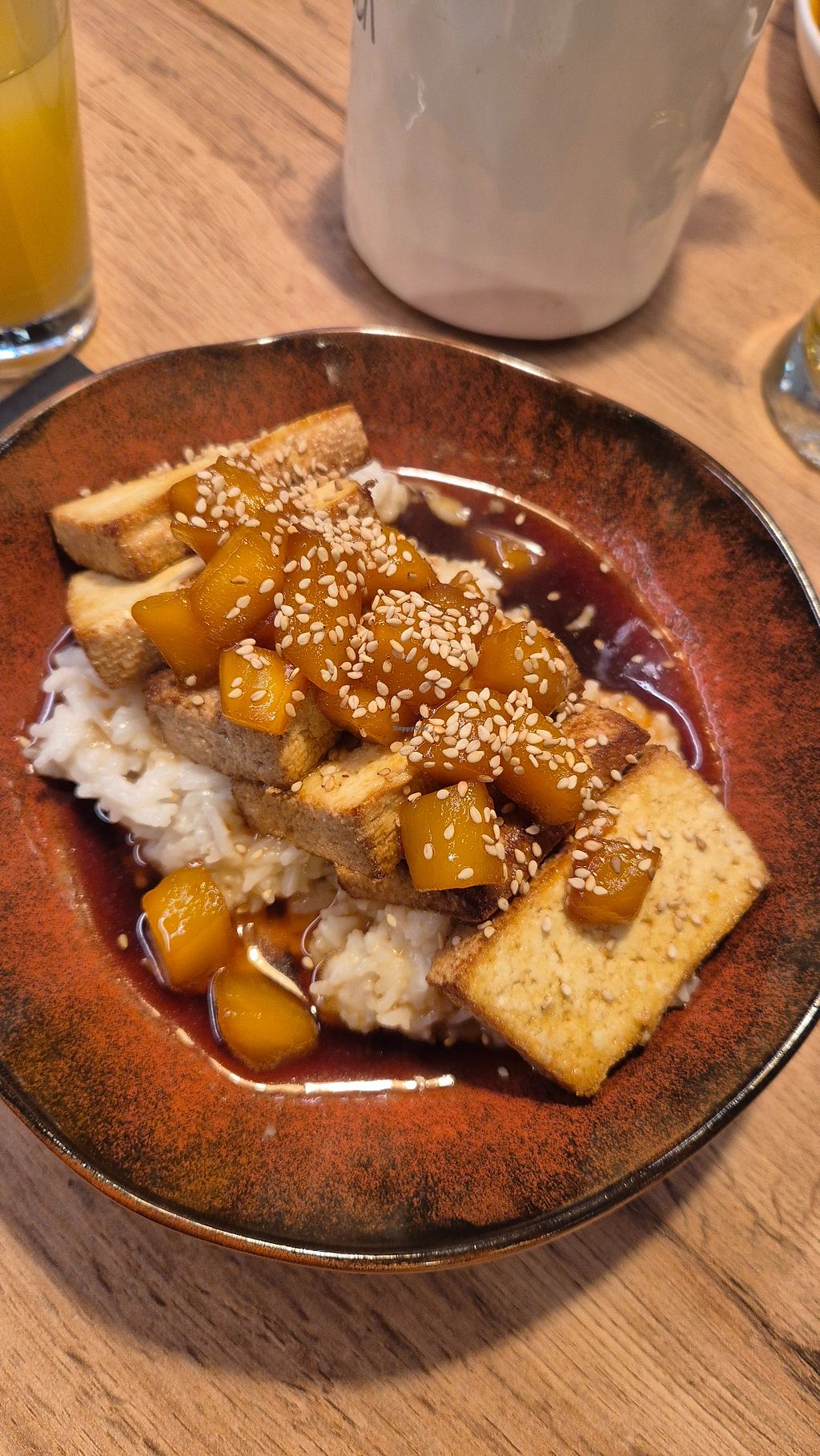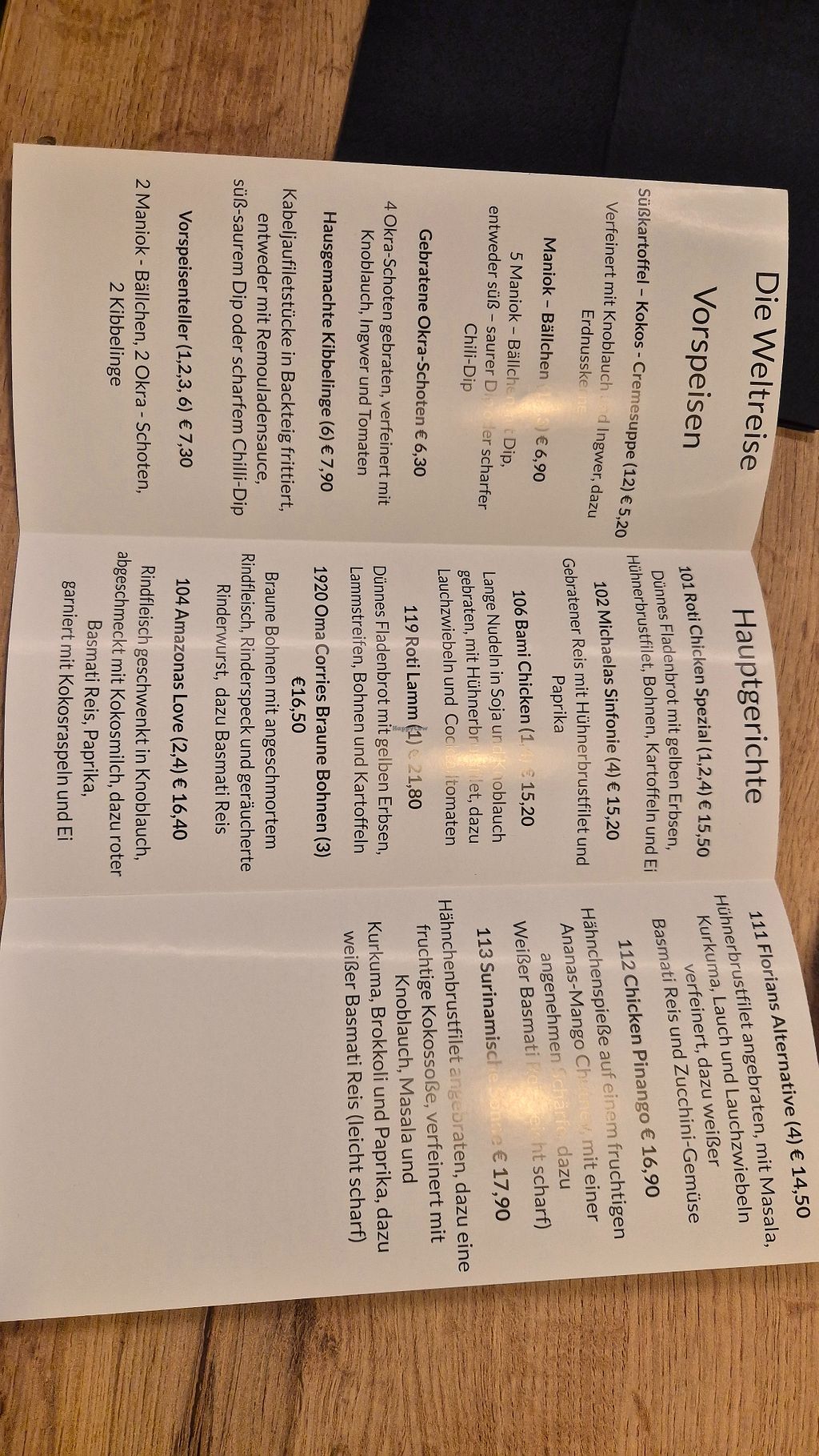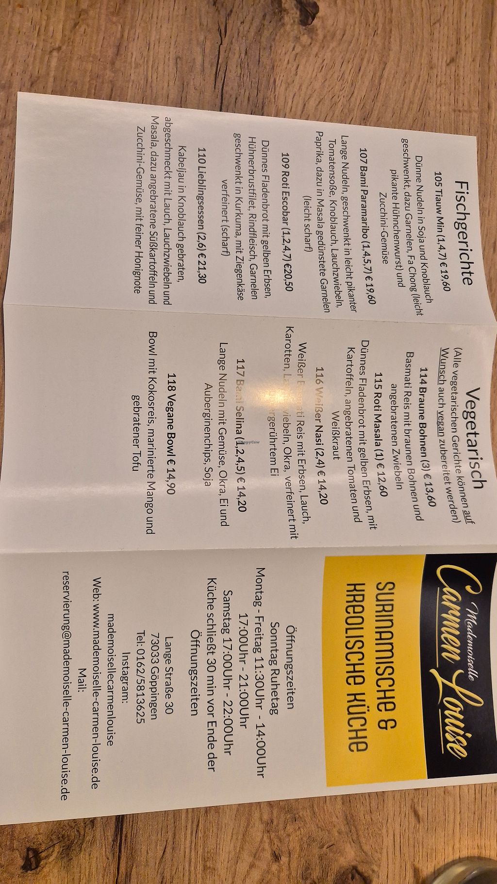 Gorgeous restaurant, very stylish interior, staff was super friendly and attentive even though the restaurant was packed (best reserve a table beforehand), all vegetarian dishes can be made vegan as well. My friend and I had the two rotis, both with a variety of veggies and beans in a fragrant and slightly spicy tomato sauce, and there was some sort of lentil or chickpea paste inside the roti which made it even more delicious. Can't wait to come back and try more Surinamese food here.