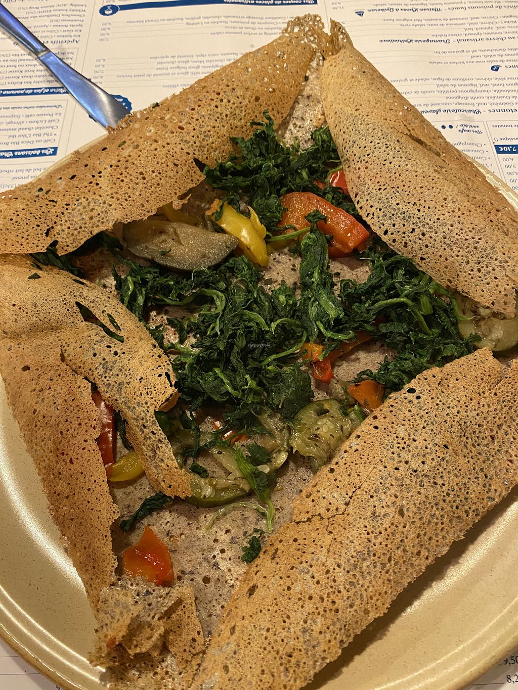 Vegan crêpes spinach and “vegetables of the sun” (zucchini - egg plant…