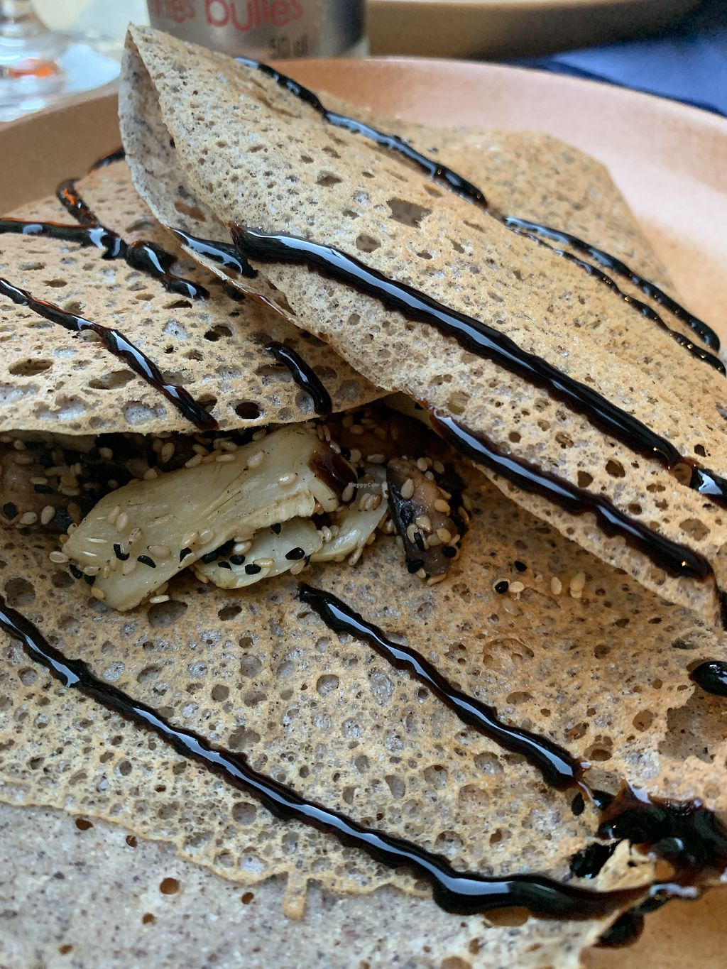 Sesame mushroom eggplant crepe