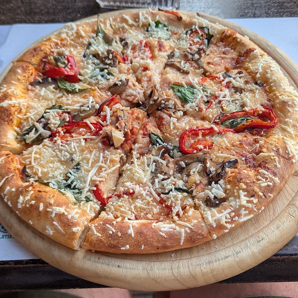 Clearly labelled vegan options with decent choices, I went for the vegan pizza with vegan mozzarella. The pizza was nice but the dough was a bit undercooked. The service was excellent and view from the restaurant was great.