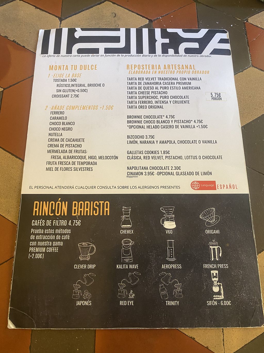 I only tried the coffee, since that’s what I was looking for. There aren’t many specialty coffee shops in Alicante, and most café’s only serve standard americano which tastes ok, but gets boring after drinking it over snd over again, despite changing up the locations. Madness serves excellent V60 and also offers chemex, origami, aeropress etc and offers freshly roasted single origin beans from south america and africa. #Veganuary