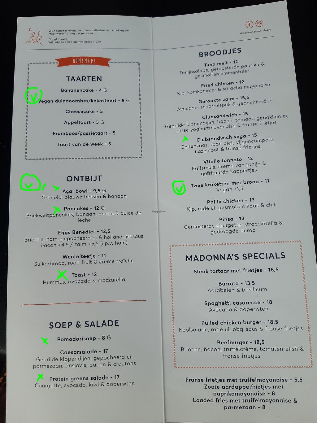 Meer opties zou mooi zijn, er is al zoveel keuze. Bediening snapte niets van vegetarisch of vegan....