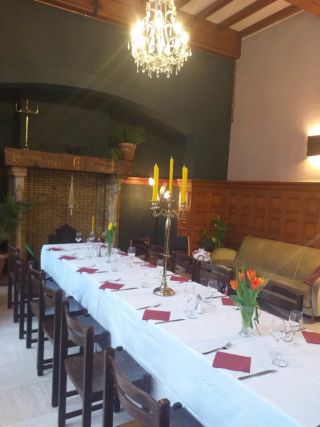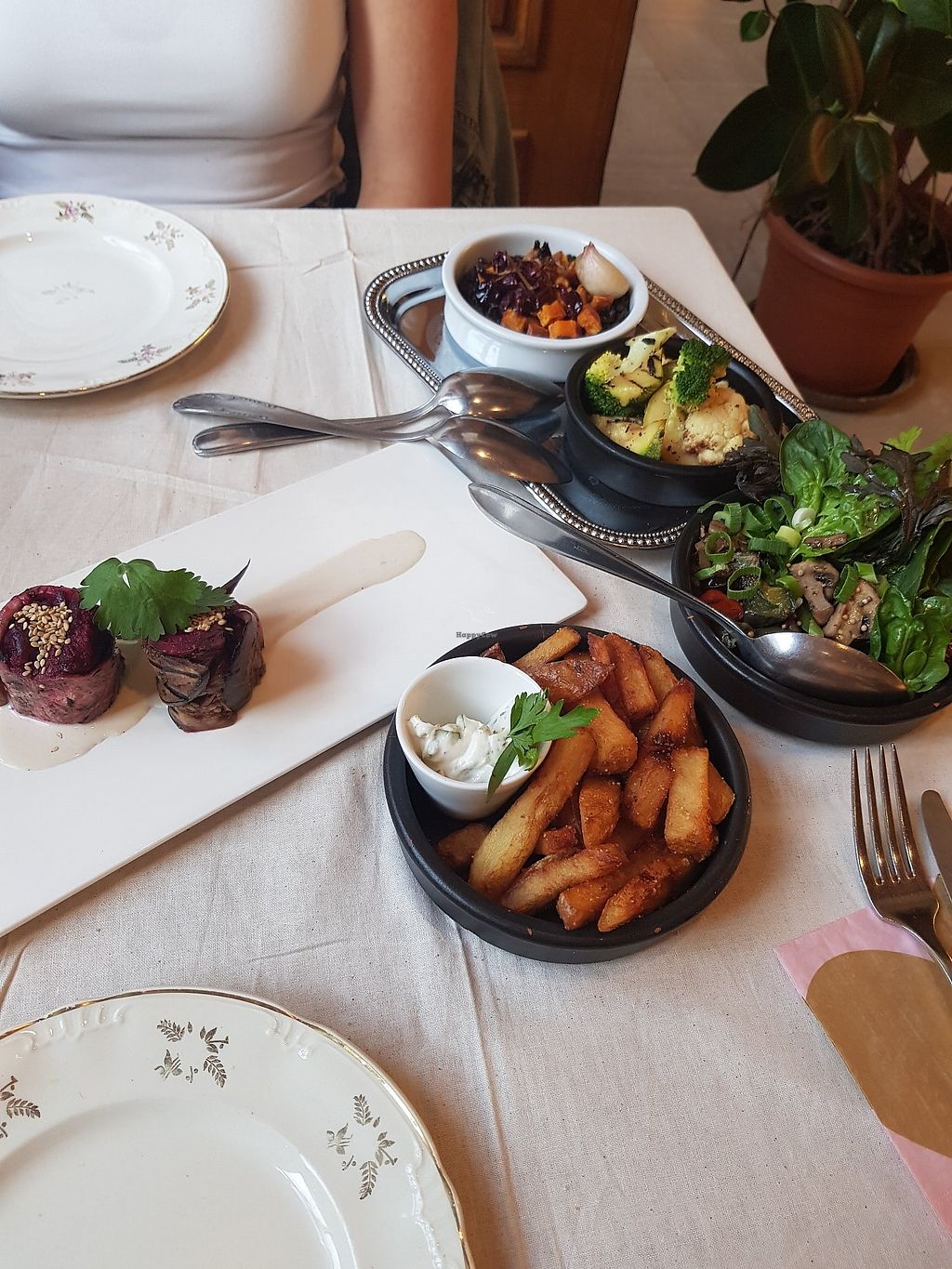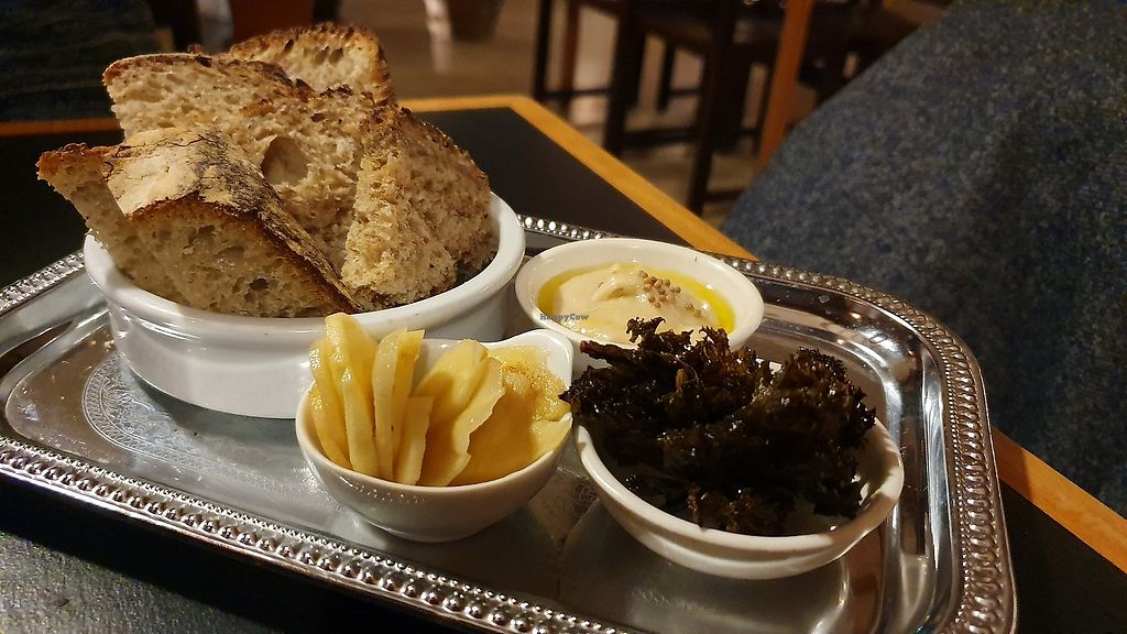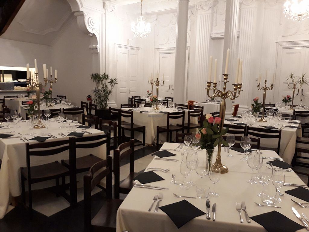 We went to this restaurant to thank my family for some help they did. We were 7 people and ordered the vegan tapas menu. Though the building is with a beautiful high ceiling, the accoustic was fine for a group. All of us enjoyed the tapas very much, including my not so vegan family, and the portions were rather big.