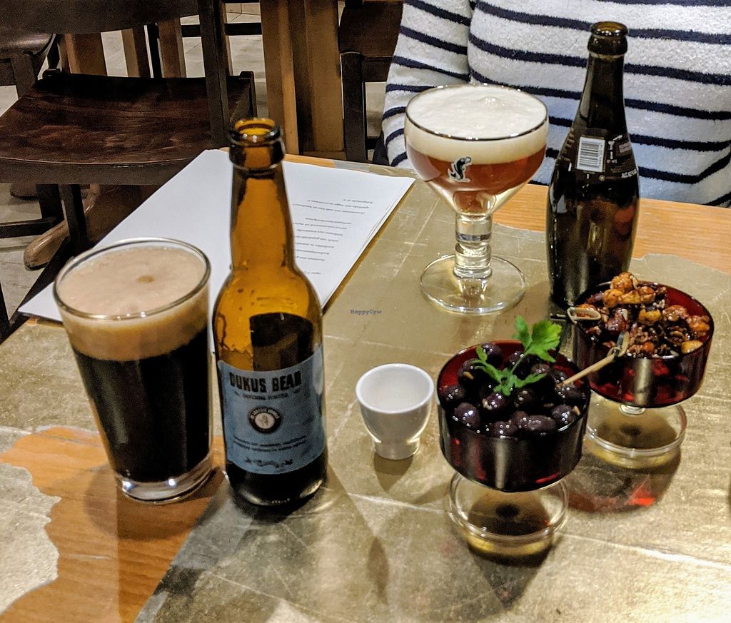 We came here with my family for a birthday and had a really good experience. They have a worthy beer menu with explanations on each beer, and the daily menu consisted of different tapas that were either vegan or could easily be turned vegan. That includes the dessert (home made ice cream). The dishes came one by one, and each time it was a really nice discovery. Even the omnivores at our table admitted that they were pleasantly surprised and didn't miss anything at all: great!