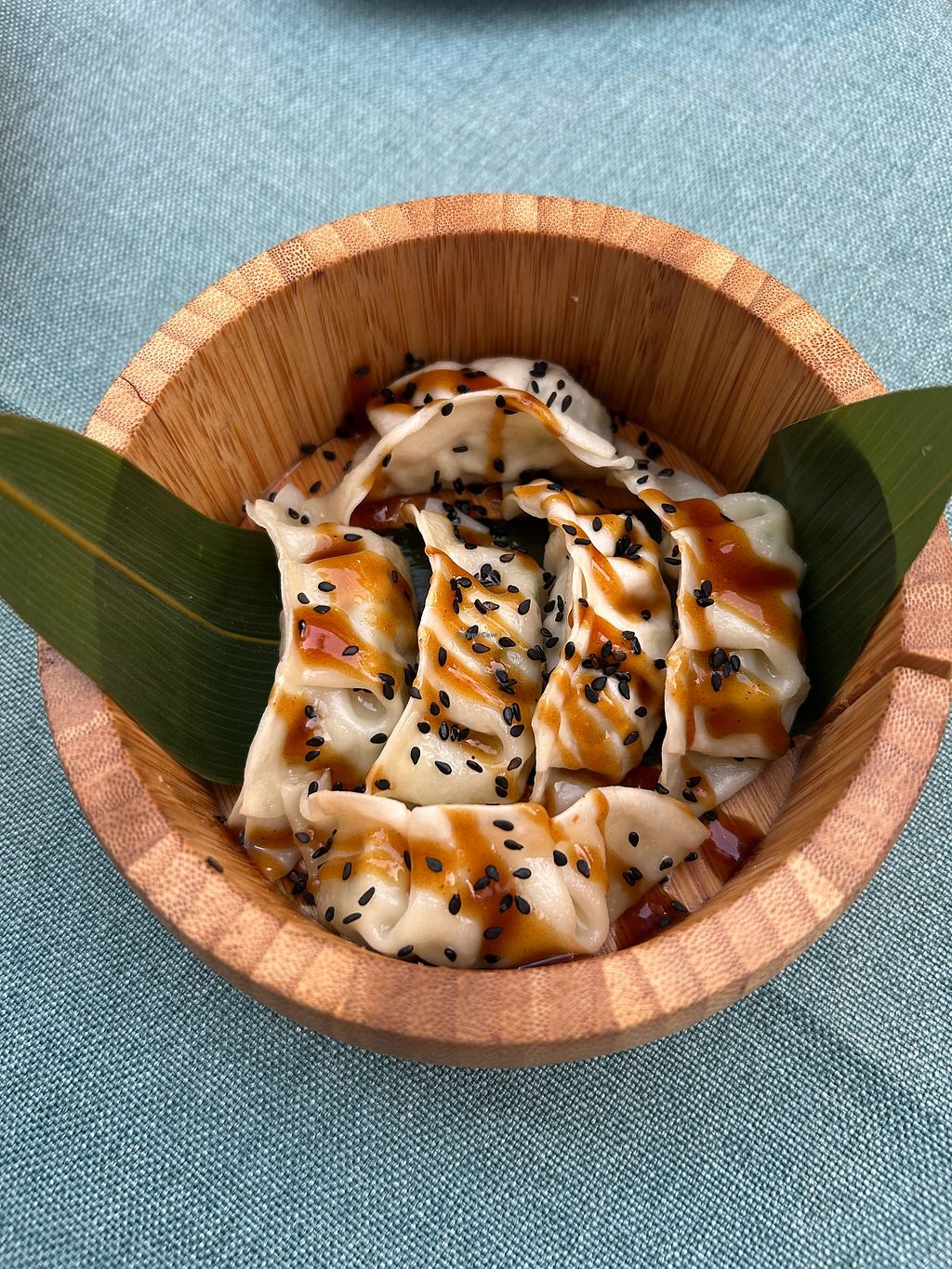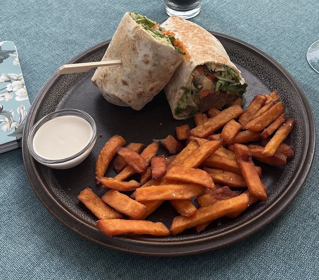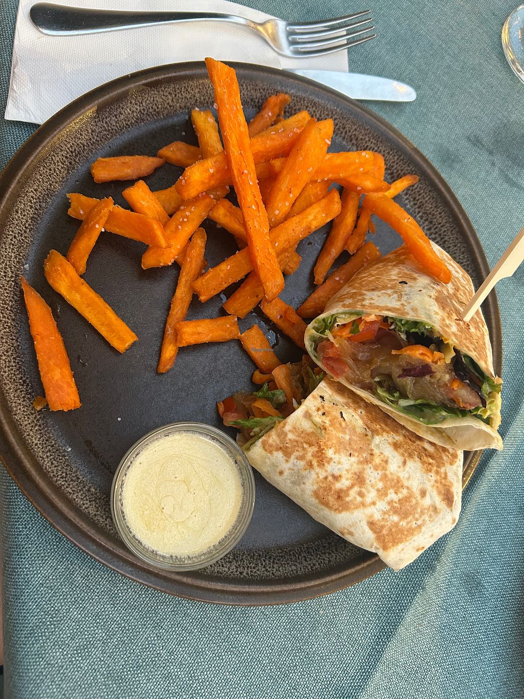 falafel (9€), fried sweet potatoe & tahini (9€), mandusalad veganised …