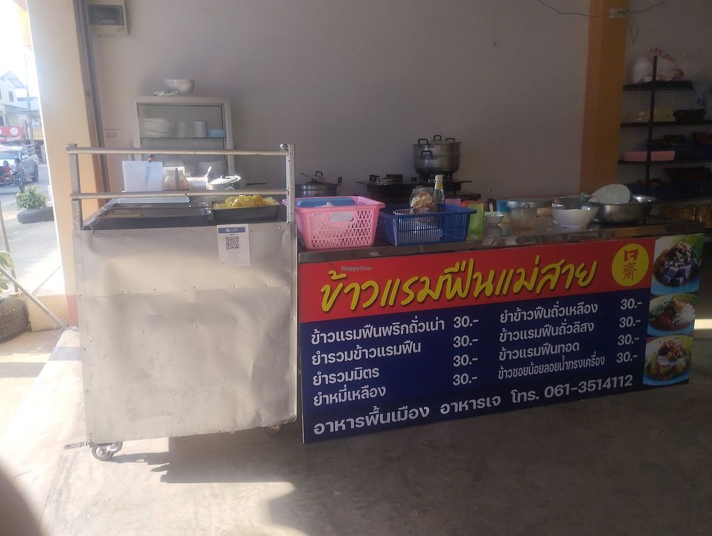 Affordable vegetarian/Jay food. Serves noodles or cornstach-cubes, Khao ramen fun. (Possibly 100% vegan. Please verify with staff/owner and send HappyCow an update, along with any further information.) Open Mon-Sun 7:00am-5:00pm.