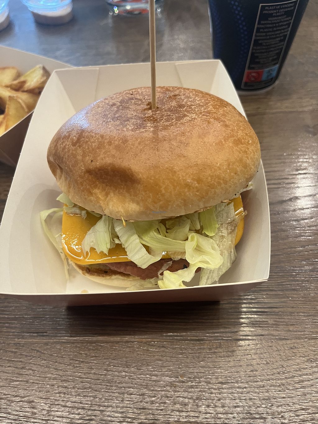 We visited the caves and found that this was really the only option for lunch as the other places at the caves had no vegan options. We had the vegan burger in a combo. Came with wedges and a very small soft drink. The dip for the wedges is bbq and far too smokey for me. But i was glad of the options.
