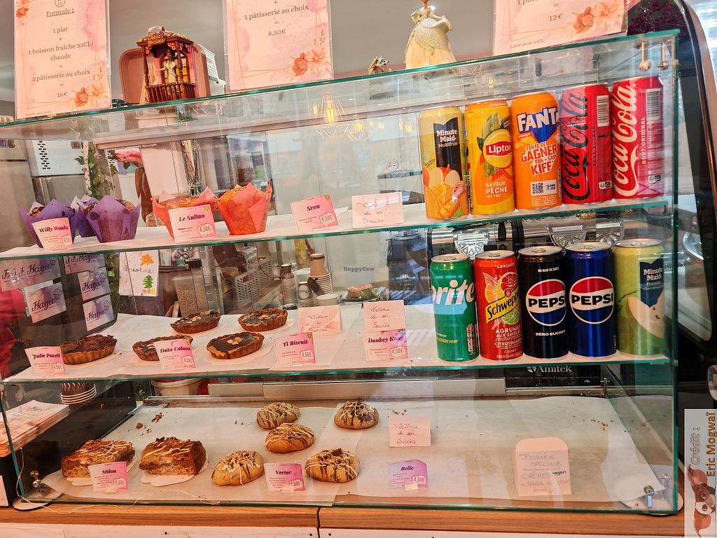 Cafe and coffee shop offering vegan sandwiches, cakes, and muffins. Previously listed as vegan, but reported January 2026 to serve cow's milk. Open Tue-Sat 08:00-19:30. Closed Sun & Mon.