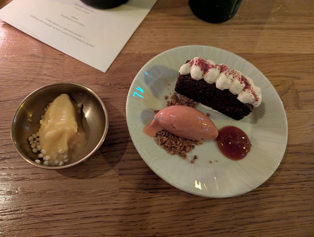 Dessert, mandarin and basil sorbet and gateaux. Just amazing.