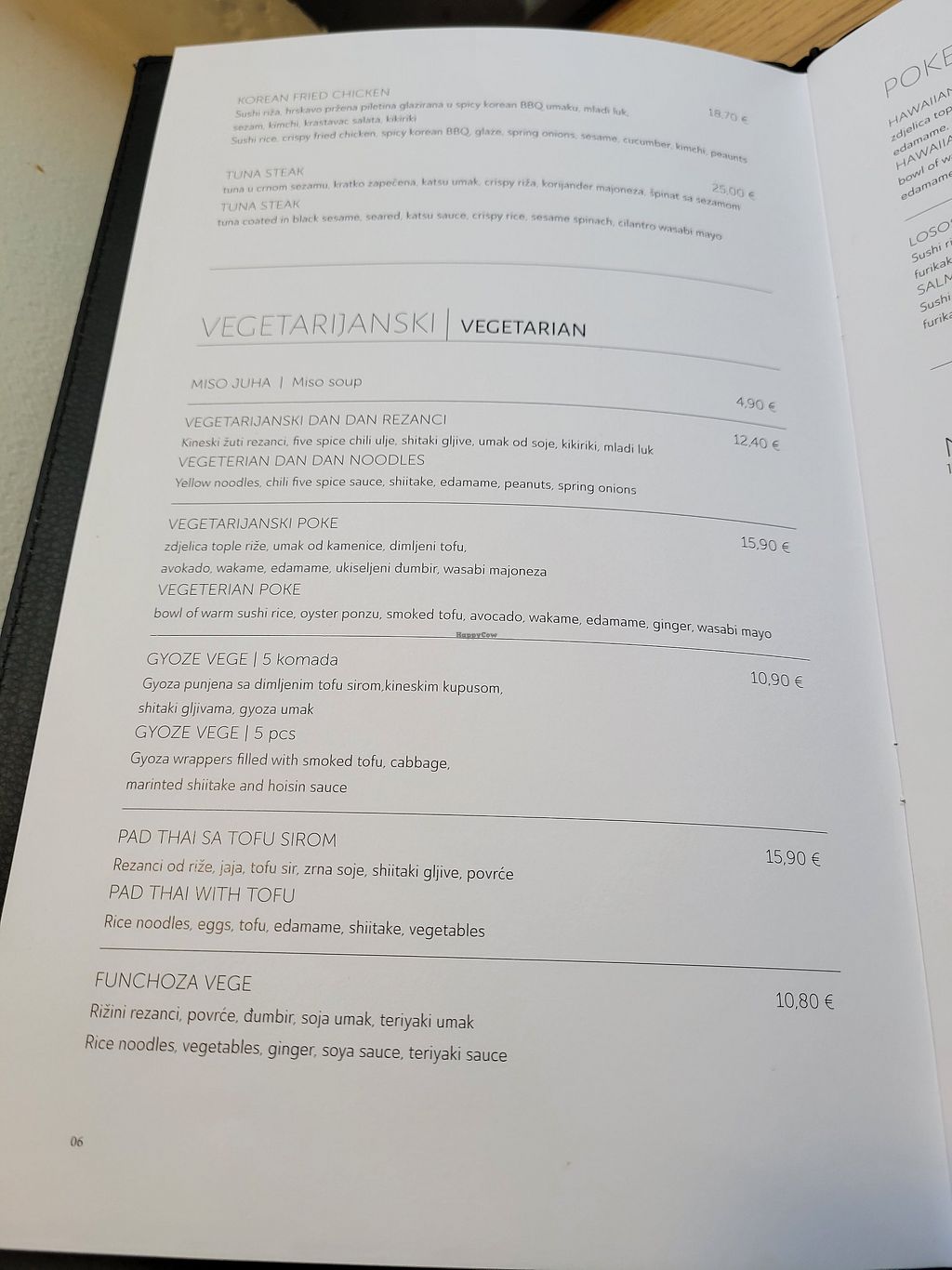 The “vegetarian“ poke bowl on the menu is with fish sauce. They put cream cheese in the aspargus maki without clear labeling.