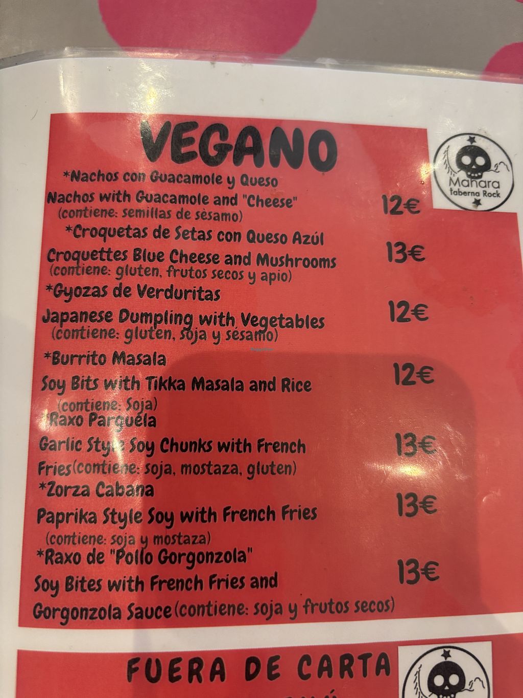 vegan menu