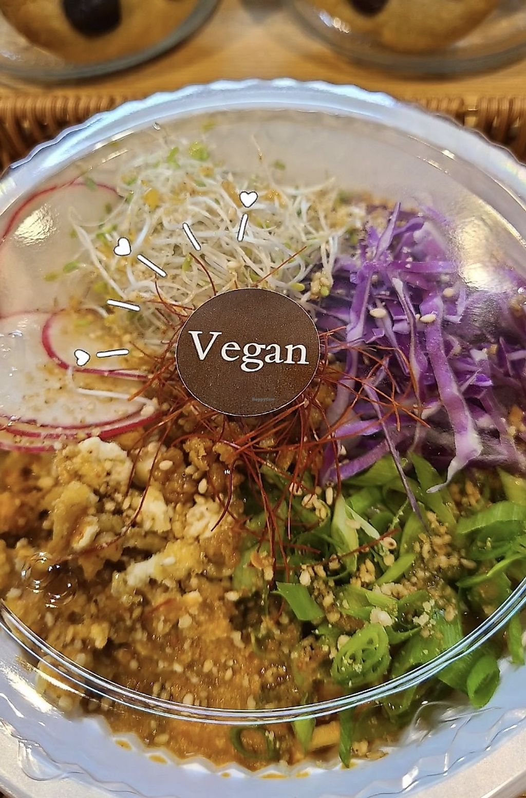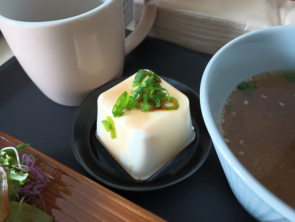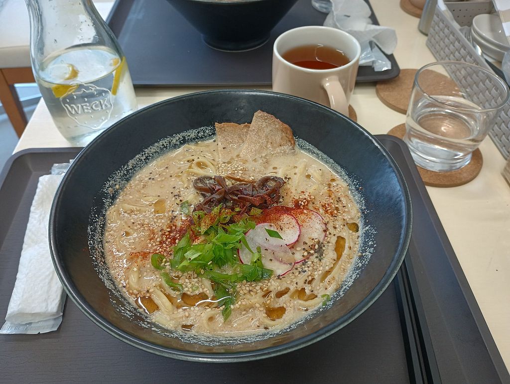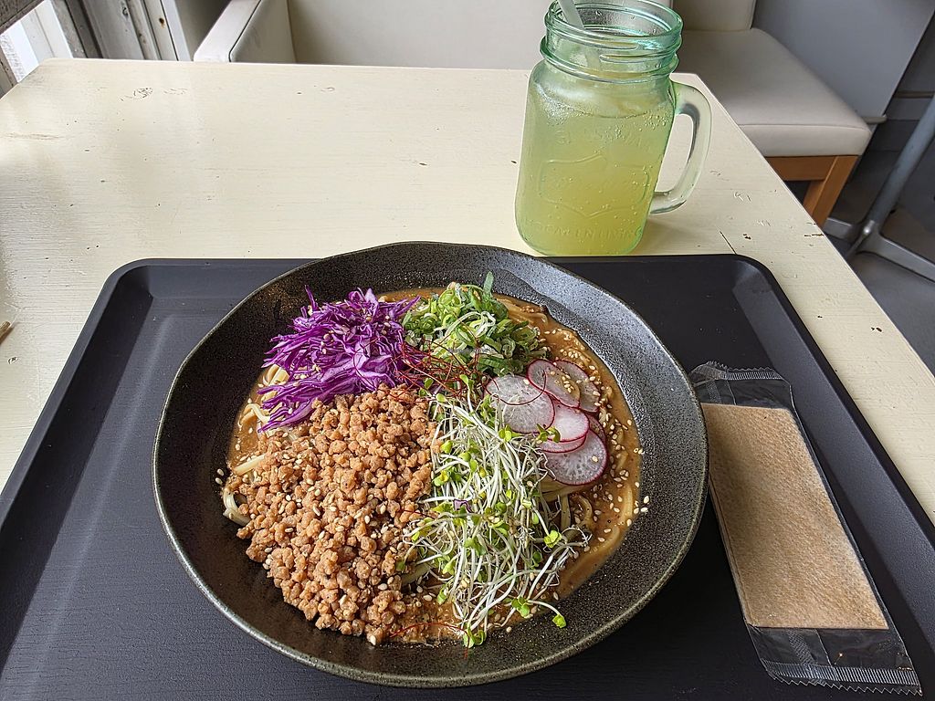 Super cute café ran by the absolute sweetest people in a really cool environment, an apartment building. There's a little space to eat or you can order for take-out. Had the tantan noodles that were just DIVINE. That's what I love about HappyCow - I would never have found this place without it.