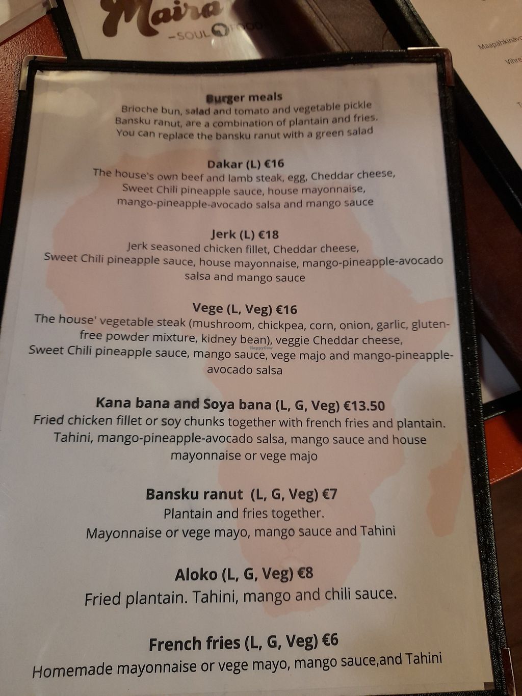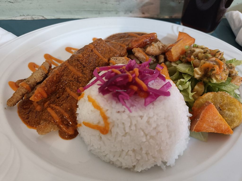 I ate Mafe (soy bites and peanut butter sauce with rice), which was very tasty and soulful! The restaurant has good vibes, and the food and friendly service definitely nourished the soul!💚