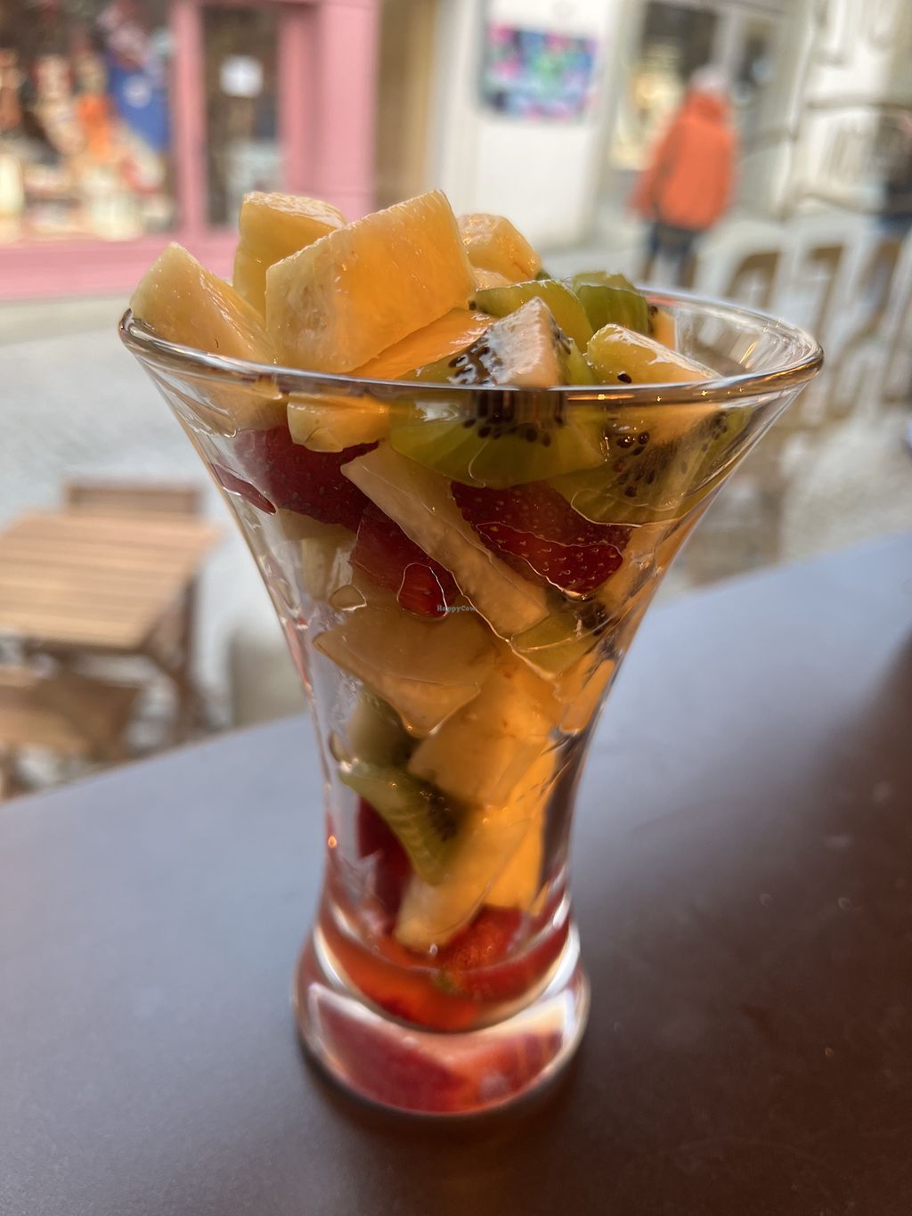 Vegan menu - not pictured is the fruit salad for dessert! On the left …