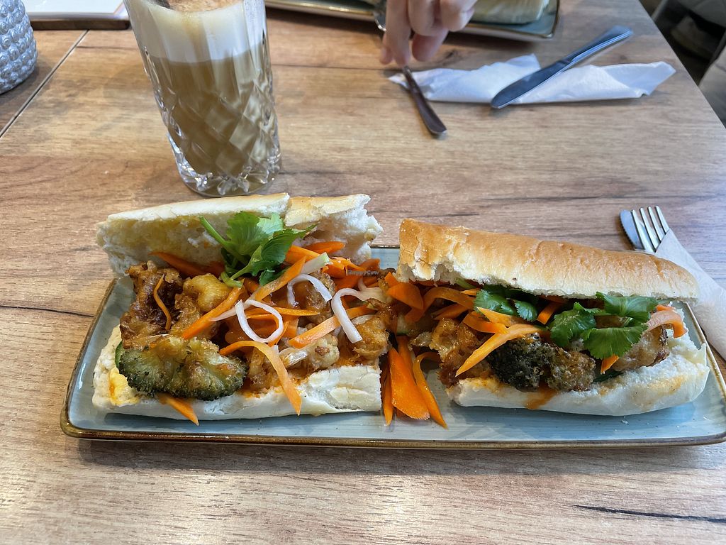 Es gibt zwei sehr gute vegane Baguettes und die Getränke können für 50 ct Aufpreis mit Hafermilch bestellt werden. Kleines, niedliches Café😄